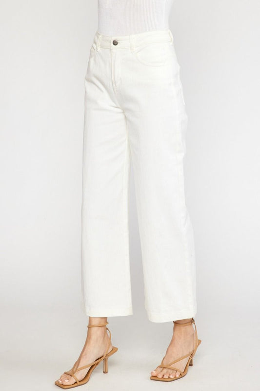 Wide Leg Denim Slit Hem Pants with Bow Detail