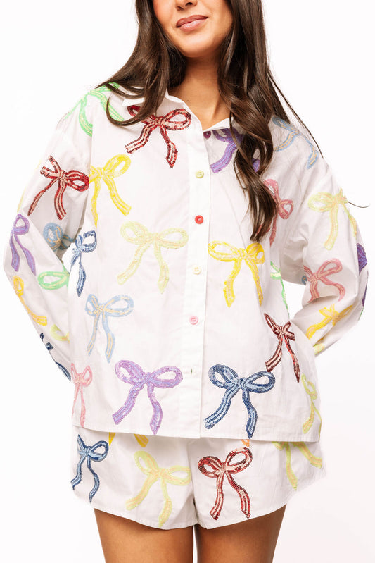 Queen of Sparkles White Multi Bow Short