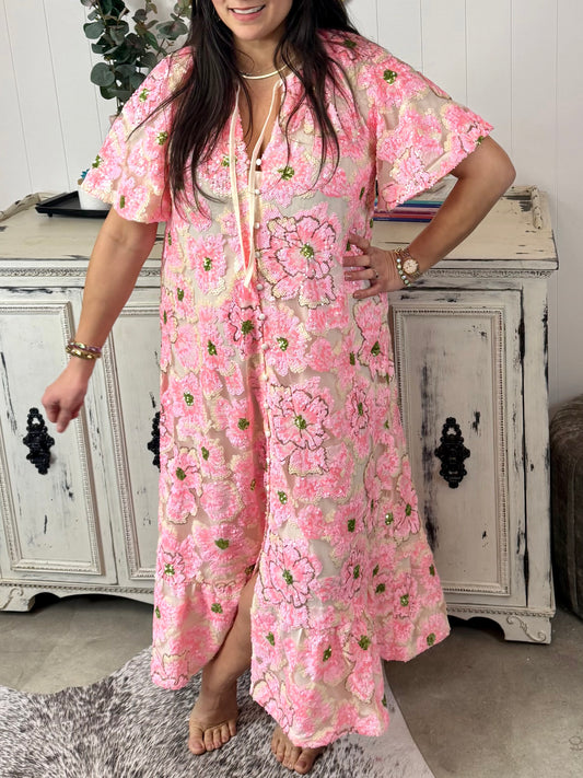 BuddyLove Talulah Caftan Maxi Dress - Pink Blossom