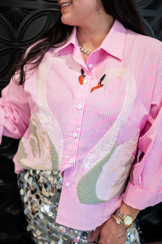 Queen of Sparkles Pink Striped Sequin Swan Top