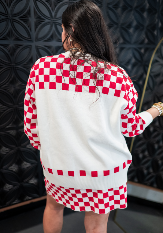 Queen of Sparkles Red & White Checkered Pizza & Wine Sweater