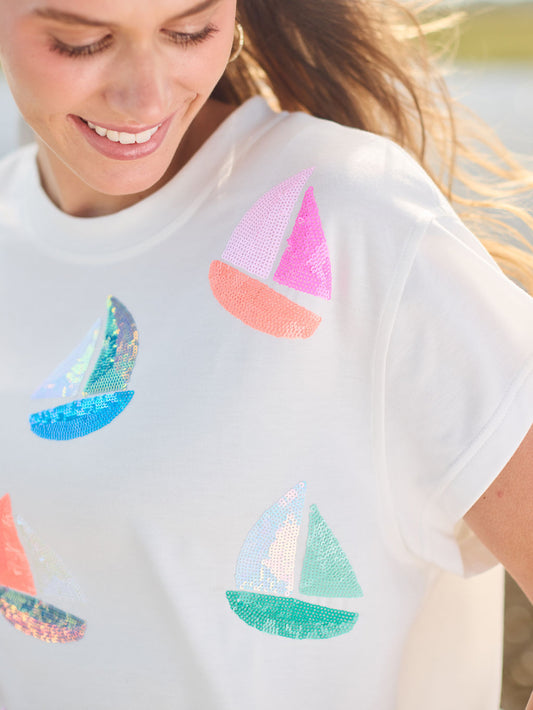 Queen of Sparkles Light Blue Turtle Fringe Top