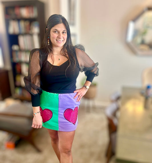 Queen of Sparkles Colorblock Rhinestone Heart Skort