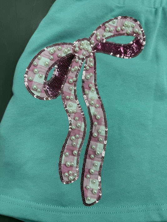 Queen of Sparkles Light Pink Oversized Rhinestone Bow Skort