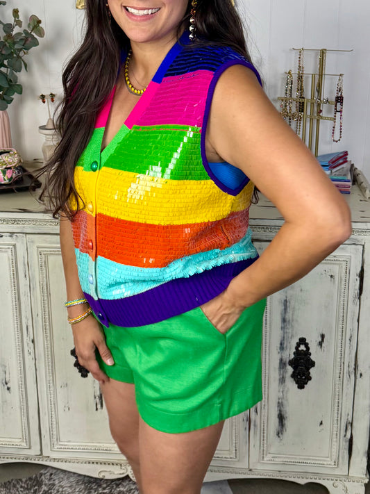 Queen of Sparkles Full Sequin Rainbow Stripe Sweater Vest