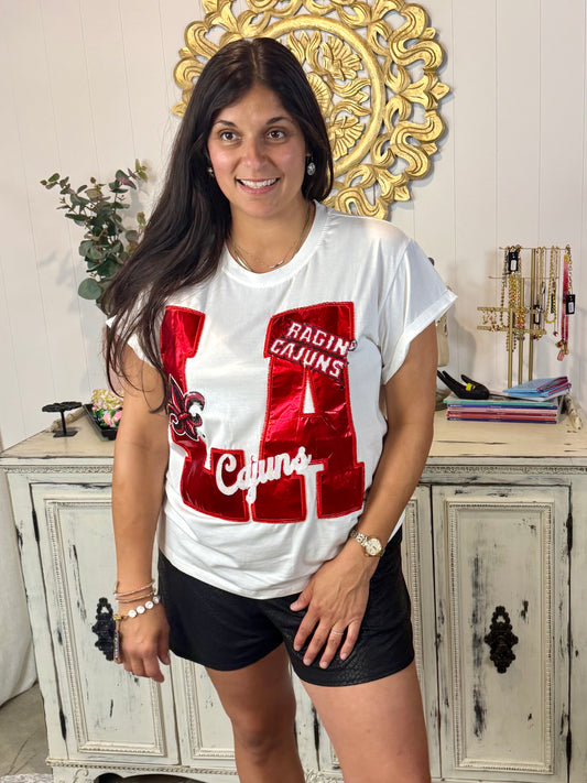 Queen of Sparkles White & Green Sequin Shamrock Tee