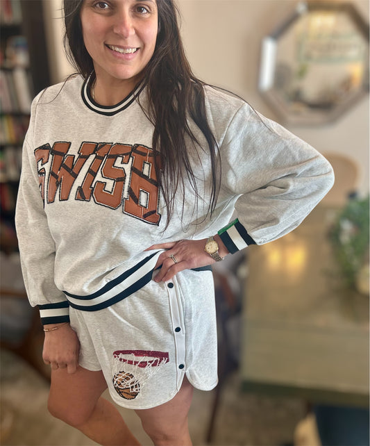 Queen of Sparkles Grey & White Slam Dunk Sweater