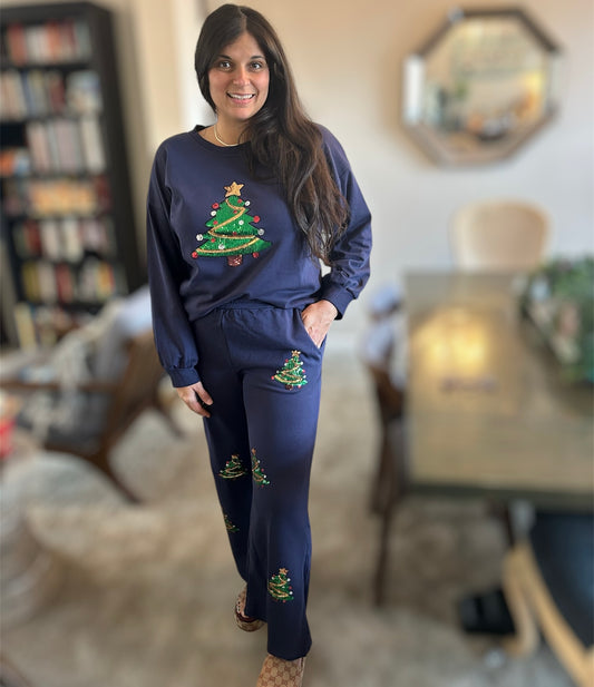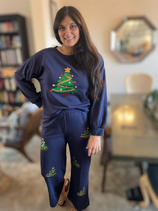 Embroidered Fuchsia Christmas Tree Sweatshirt