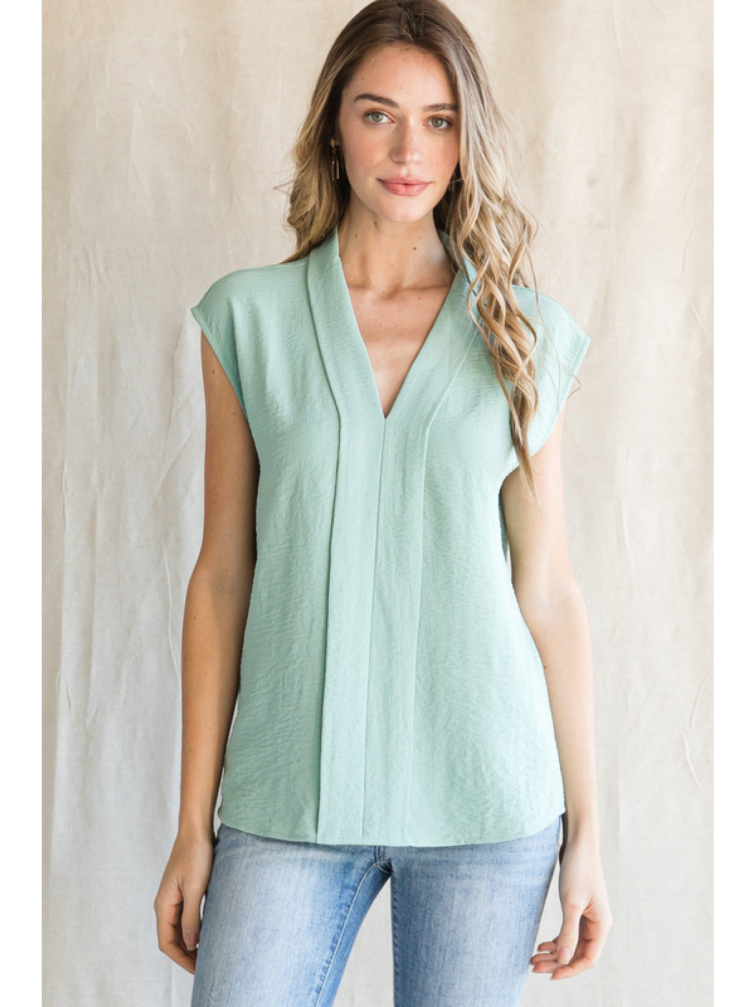 Solid top with a lapelless neck, curved shoulder and hemline.