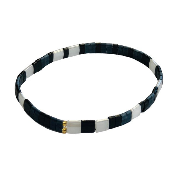These handmade elastic bracelets are made of Miyuki TILA beads imported from Japan. TILA beads have a double set of holes, which makes them more secure and have a square or rectangle shape, very different to the round-shaped beads we are used to.