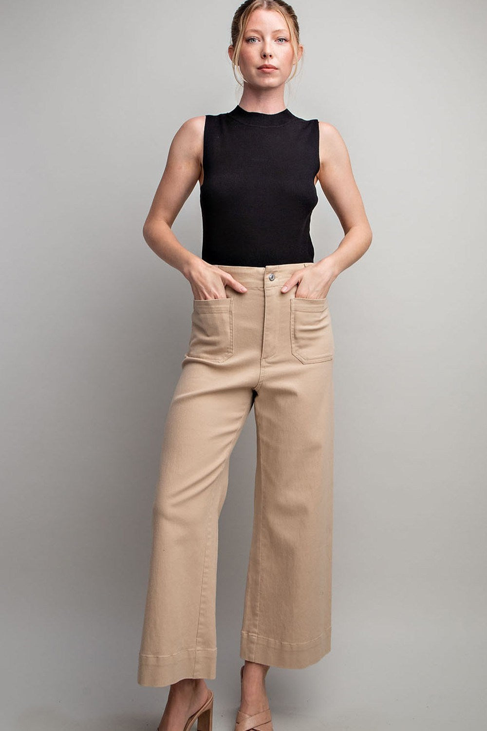 Classy fitted tank top made in a knit fabric with a mock neck.