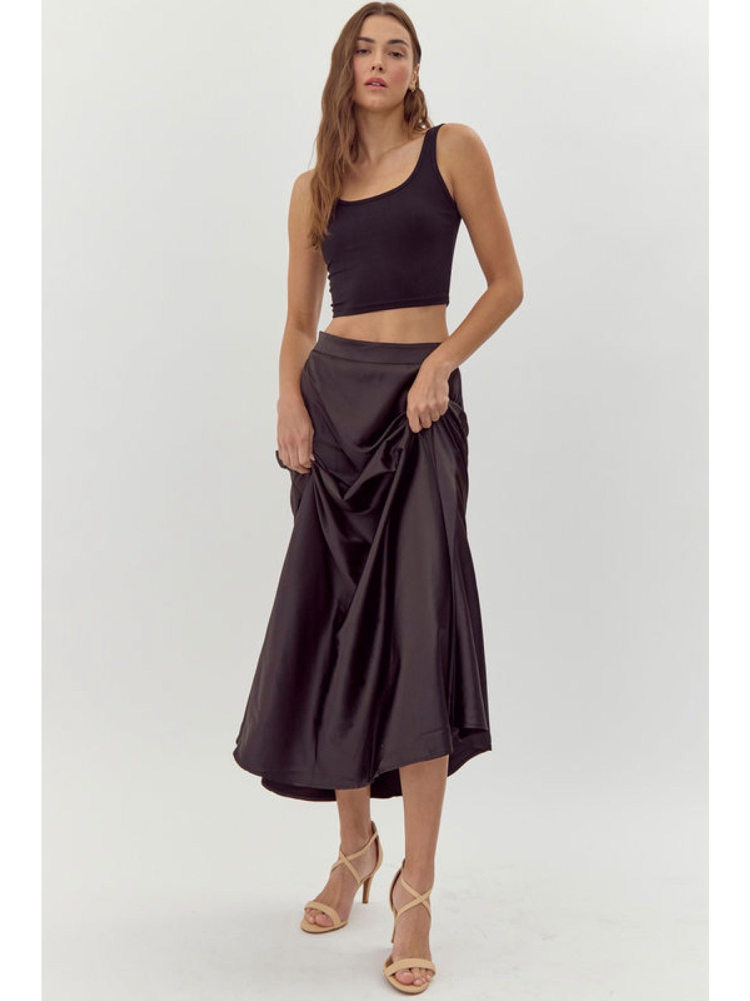 Black Satin Midi Skirt
