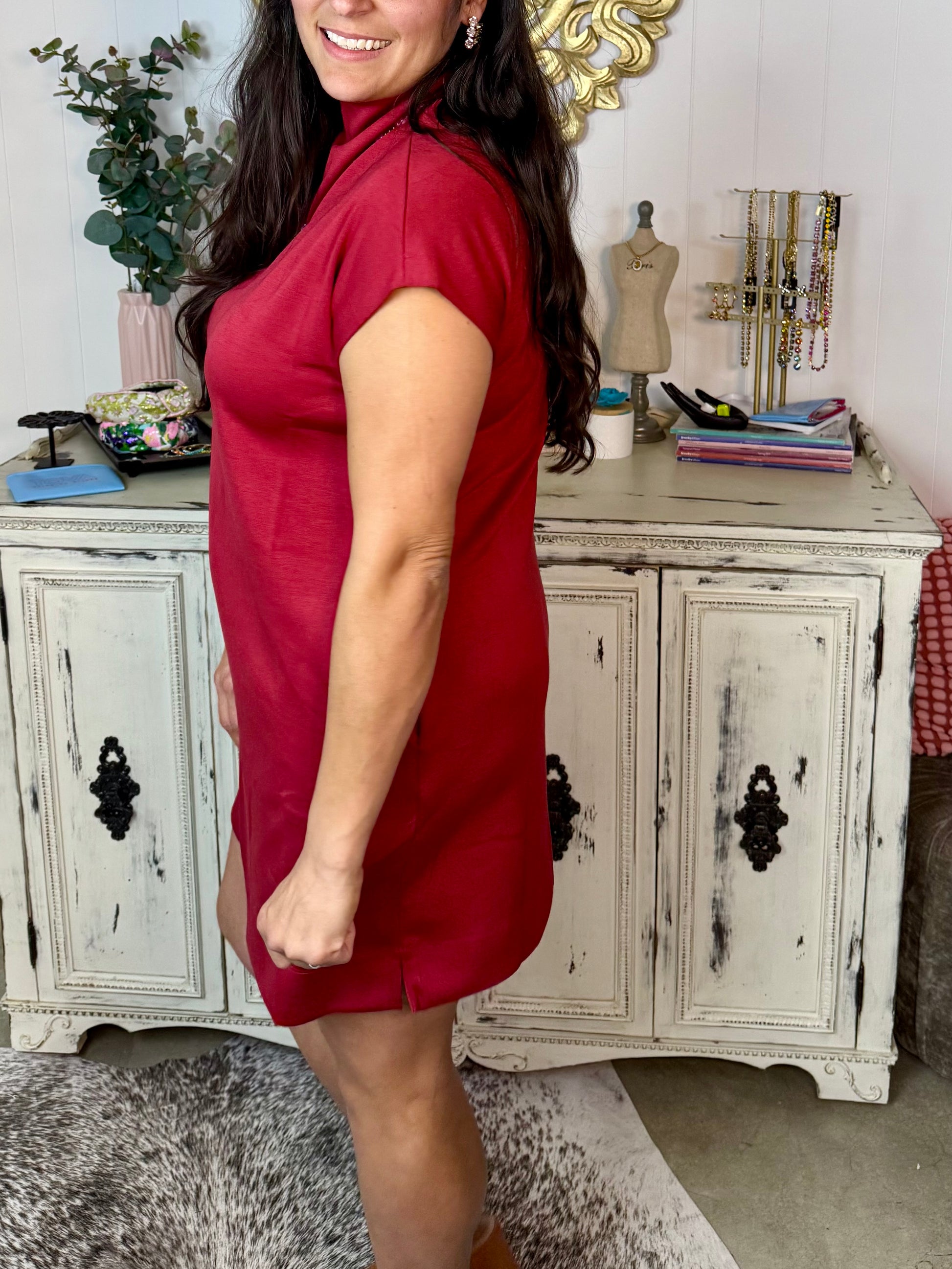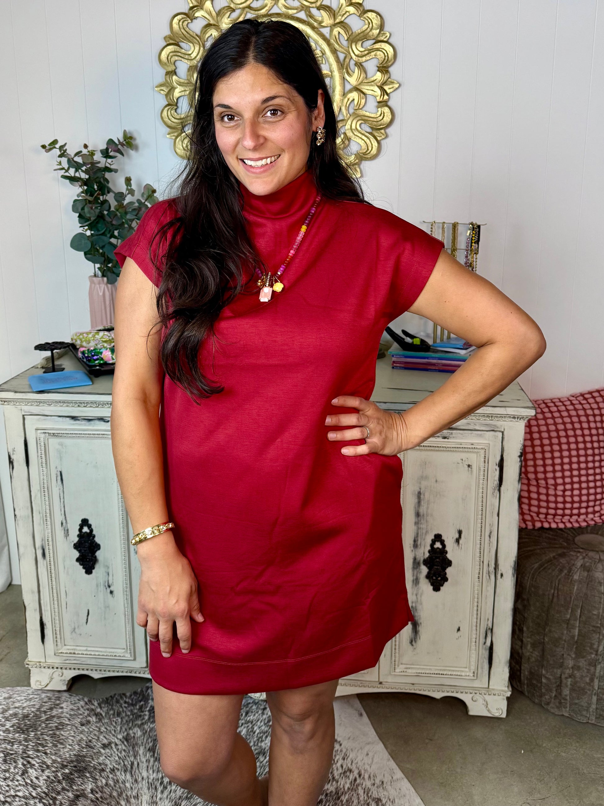 Elevate your everyday look with the Effortless Charm Mock Neck Dress. Made from a buttery-soft jersey knit, this dress blends comfort with polish in the best way. The bold red hue makes a confident statement, while the mock neck and relaxed silhouette give it a modern, minimal edge. Short sleeves and subtle structure keep it easy to wear and effortlessly flattering.