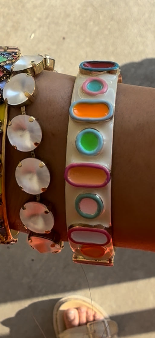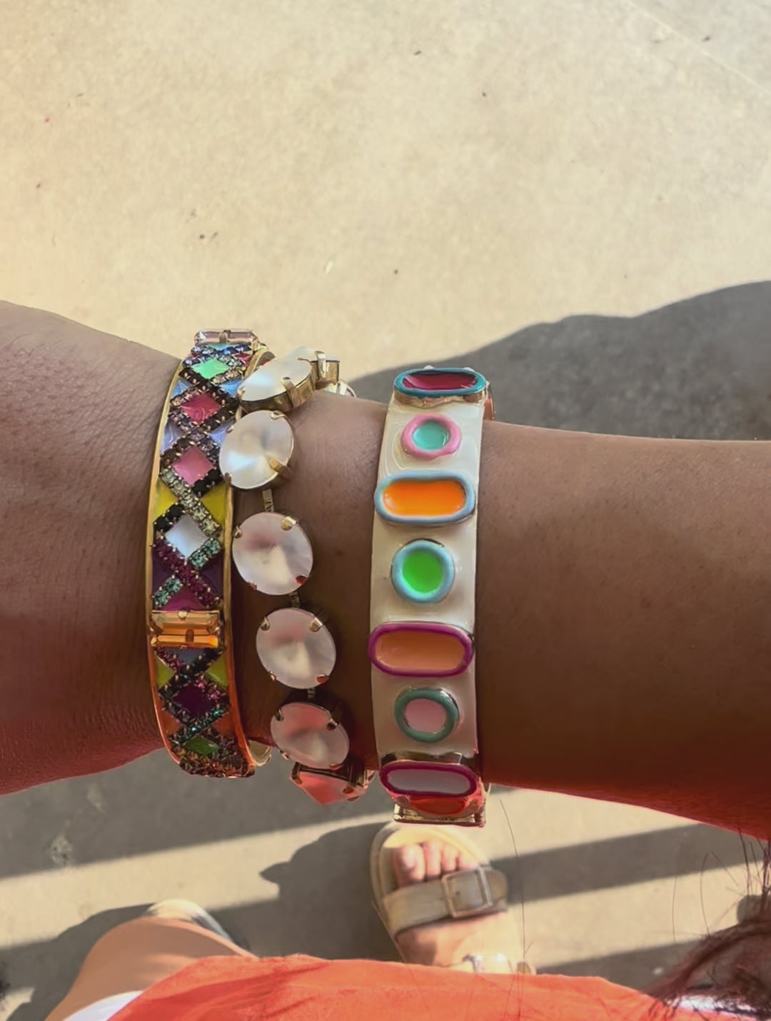 Turn up the style with the CArwen Cuff—your go-to for bold, modern flair! Featuring hand-painted enamel, vibrant pops of color. This bangle is designed to fit most wrists comfortably. Handmade in Canada, it’s the perfect blend of edgy sophistication and standout craftsmanship. Slip it on and steal the spotlight!