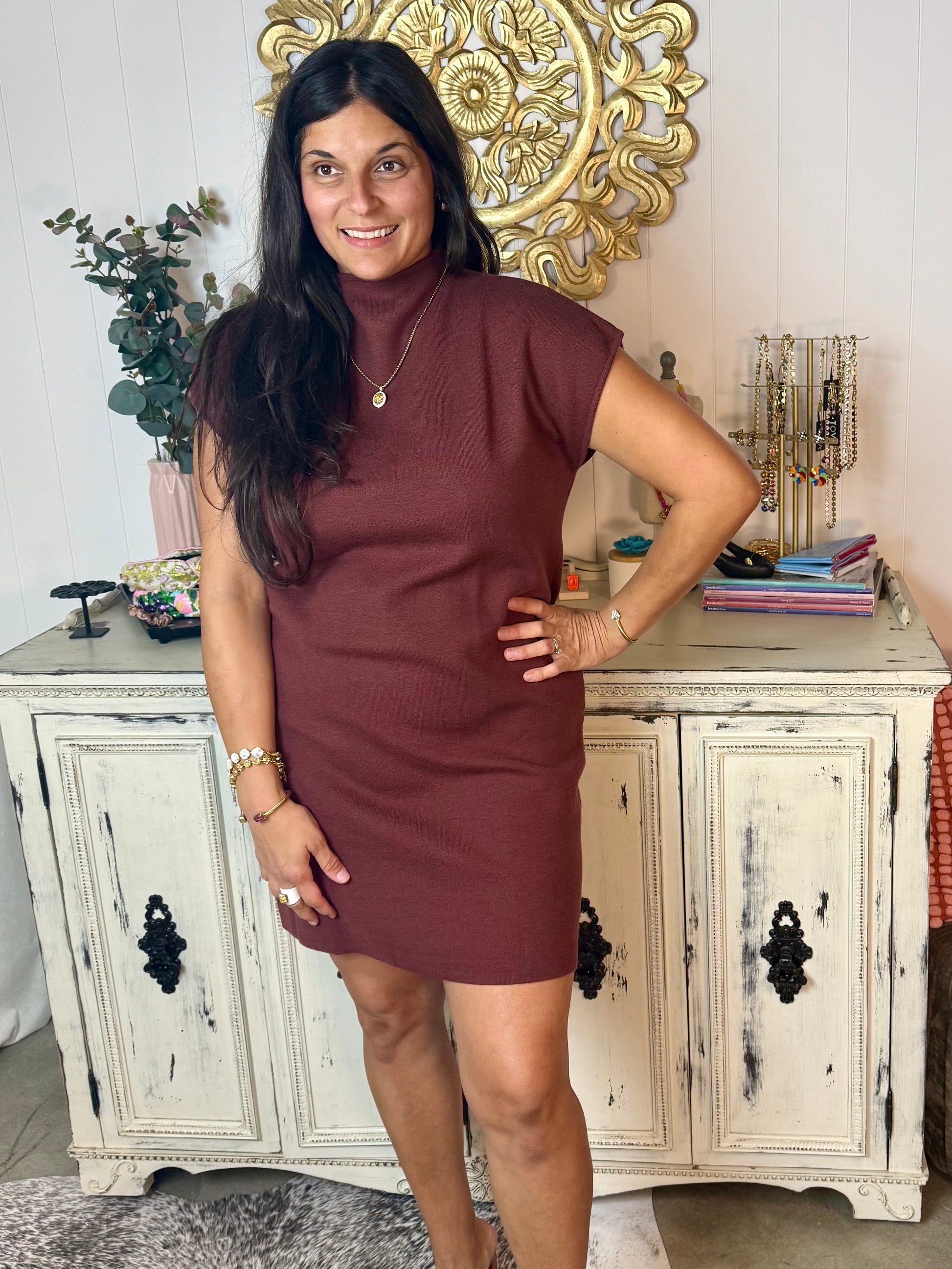 š« Effortless Charm Mock Neck Dress ā Chocolate