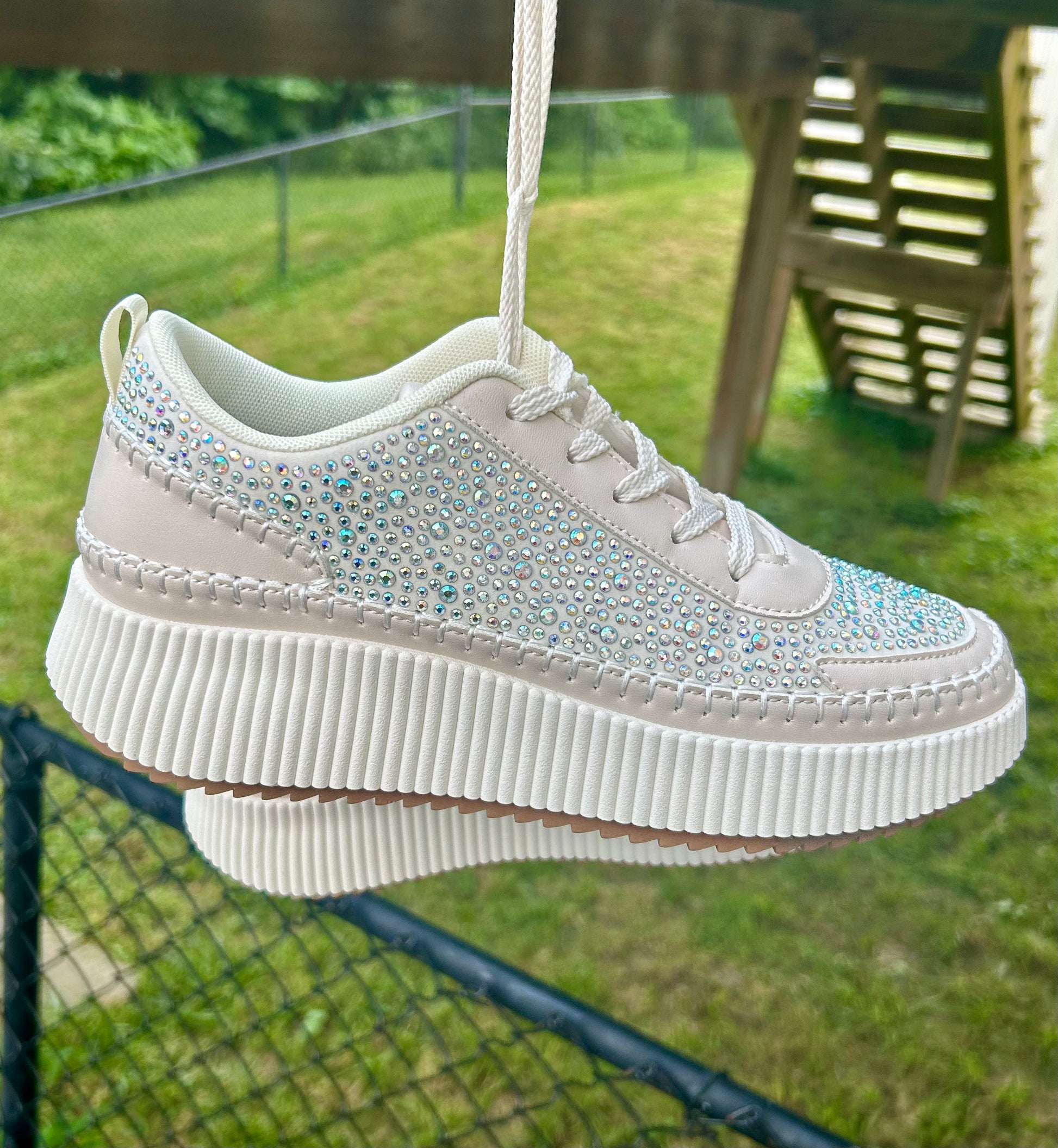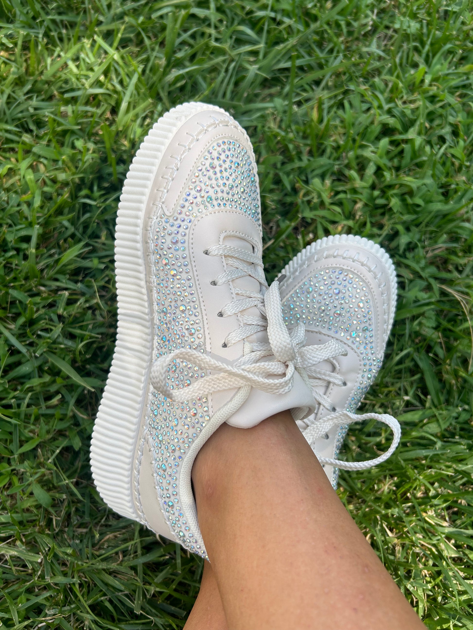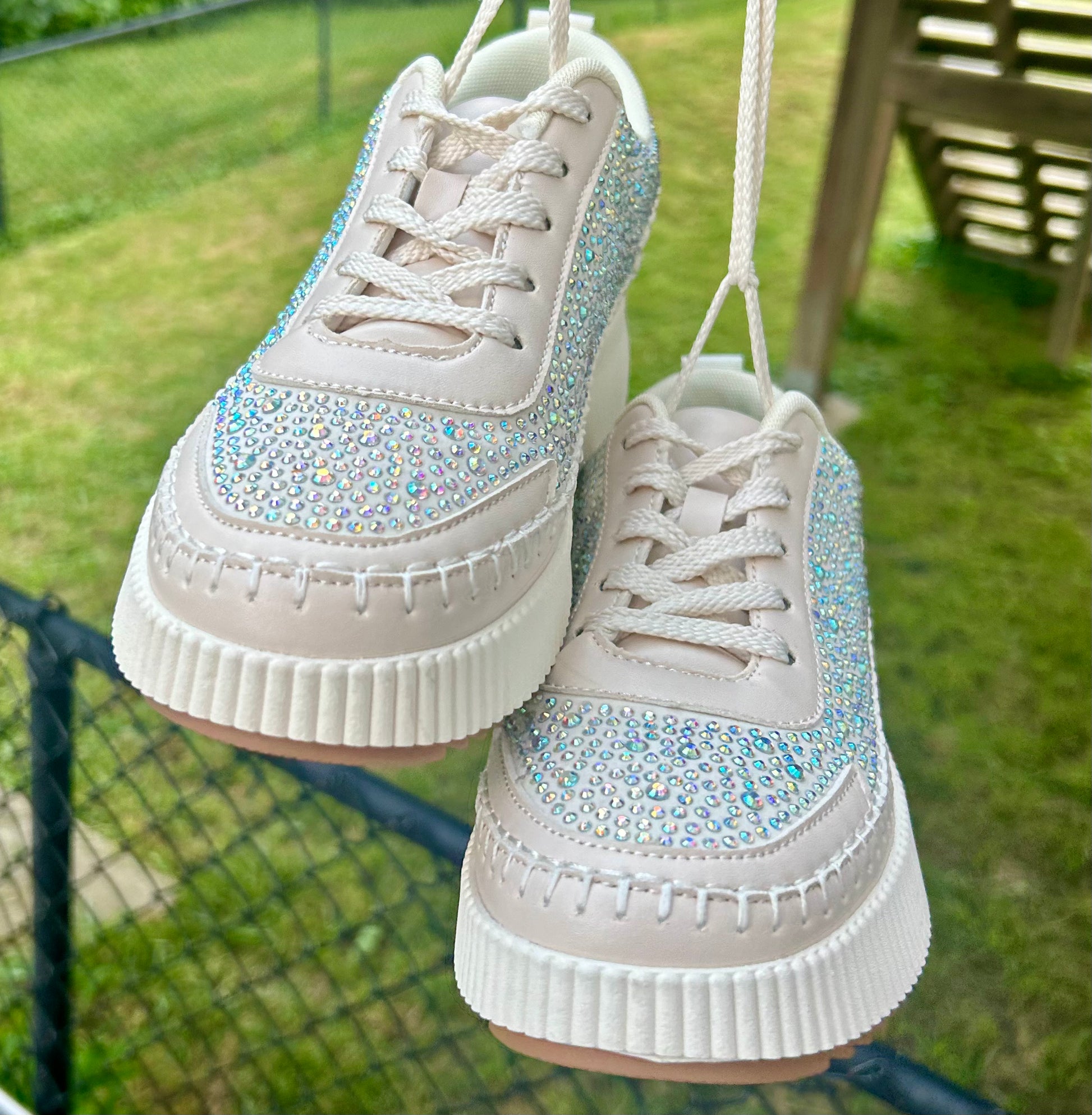 Covered in shimmering rhinestones, these kicks will make you the star of any event. The platform soles give you an extra boost in height and style, while the soft, cushioned interior ensures all-day comfort. Perfect for parties, festivals, or just adding some sparkle to your everyday look, these shoes are a true showstopper. Slip them on and let your feet do all the talking!