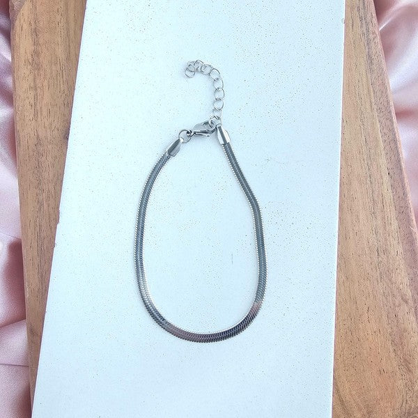 Introducing our all-new Luxe Silver Herringbone Bracelet - your stylish sidekick for every occasion! Whether you're rocking your favorite jeans and tee combo or glamming up for a night out, this bracelet has got your back. Versatility is the name of the game here. Whether you're a fan of minimalism or love a layered look, this bracelet is your ultimate styling canvas.