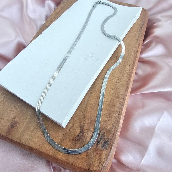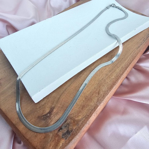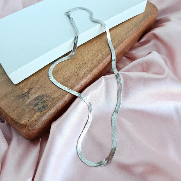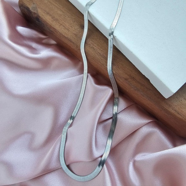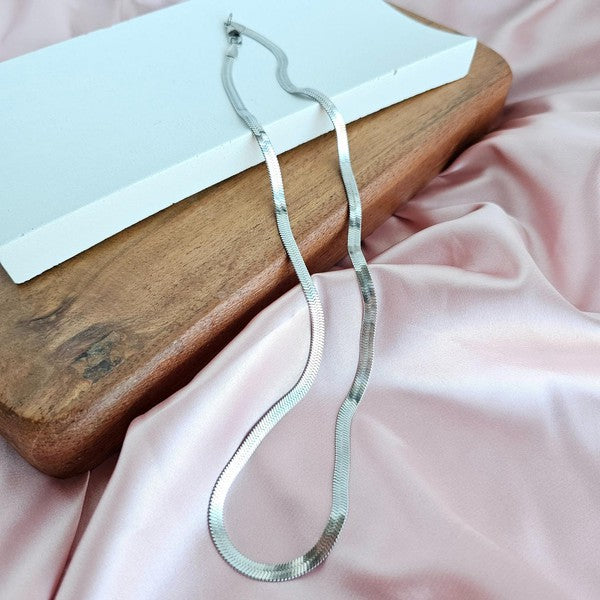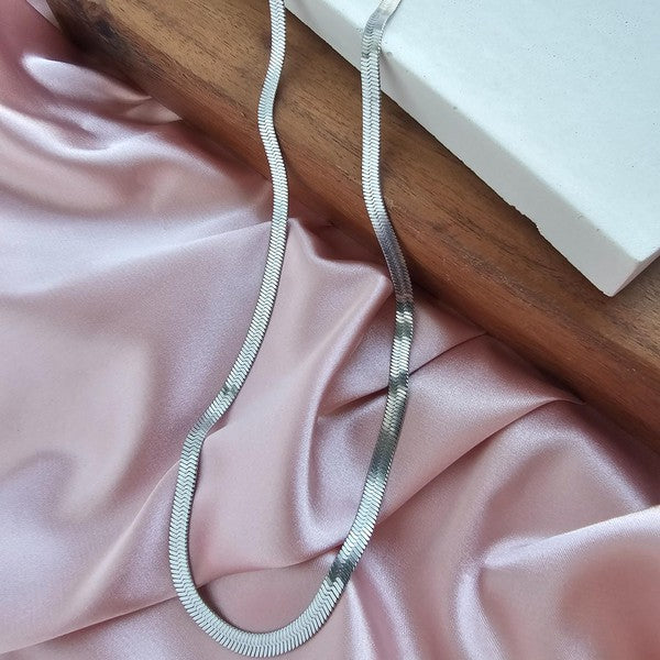 Introducing our all-new Luxe Silver Herringbone Chain - your stylish sidekick for every occasion! Whether you're rocking your favorite jeans and tee combo or glamming up for a night out, this chain has got your back. Versatility is the name of the game here. Whether you're a fan of minimalism or love a layered look, this necklace is your ultimate styling canvas.