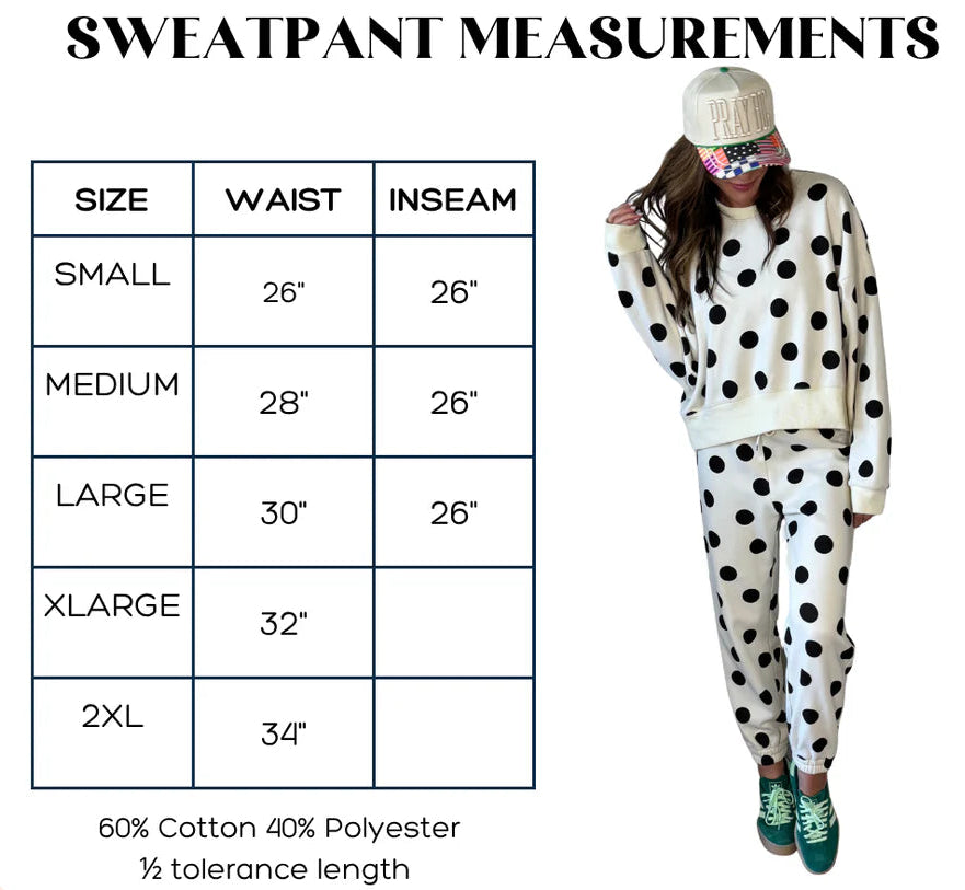 Meet your new favorite joggers β soft, comfy, and covered in playful polka dots. Designed with a relaxed fit and easy stretch, these are perfect for lounging, running errands, or staying cozy all day long. Cute, comfy, and totally irresistible πποΈ