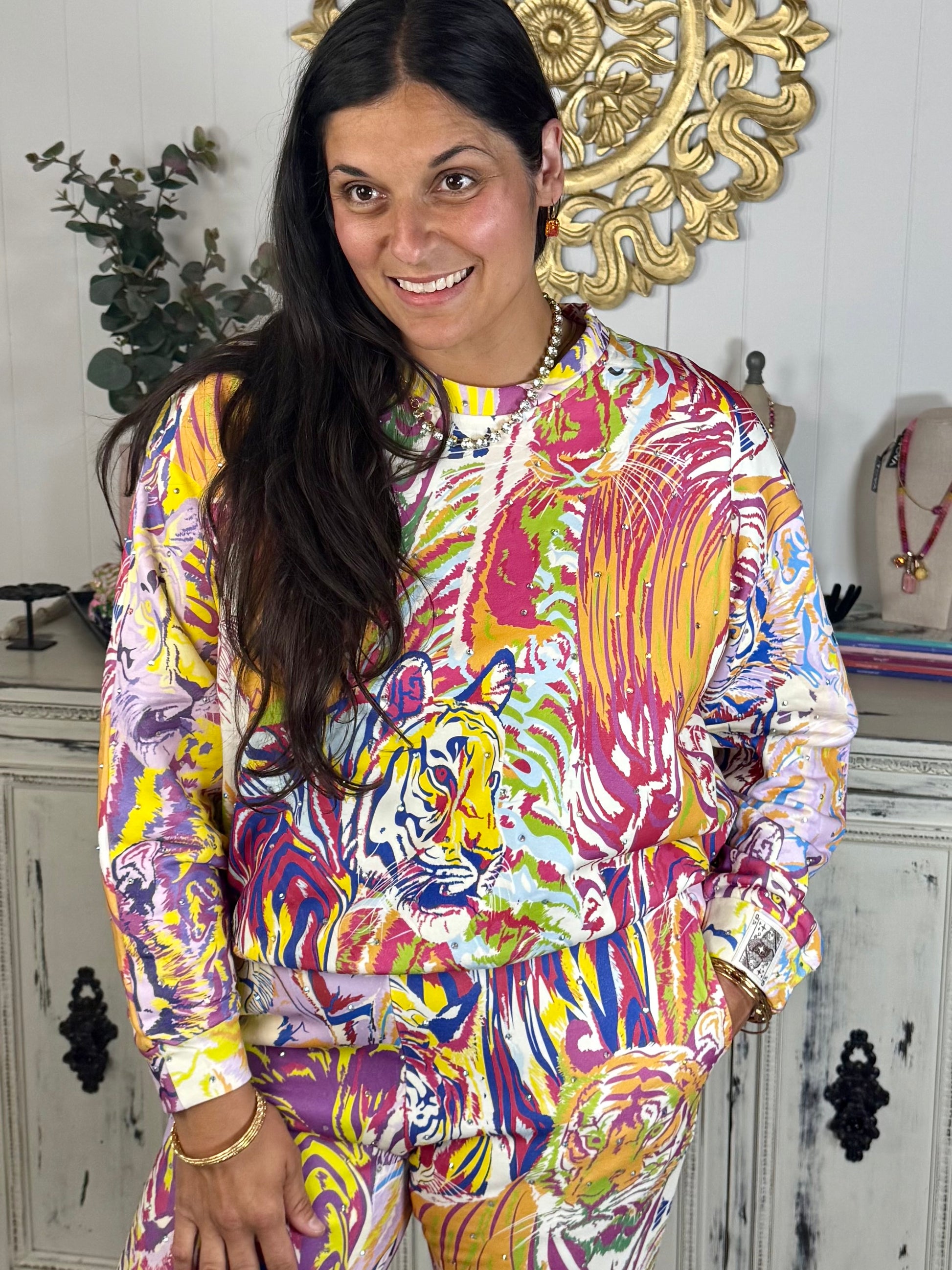 🐅 Queen of Sparkles Multicolor Tiger Sweatshirt