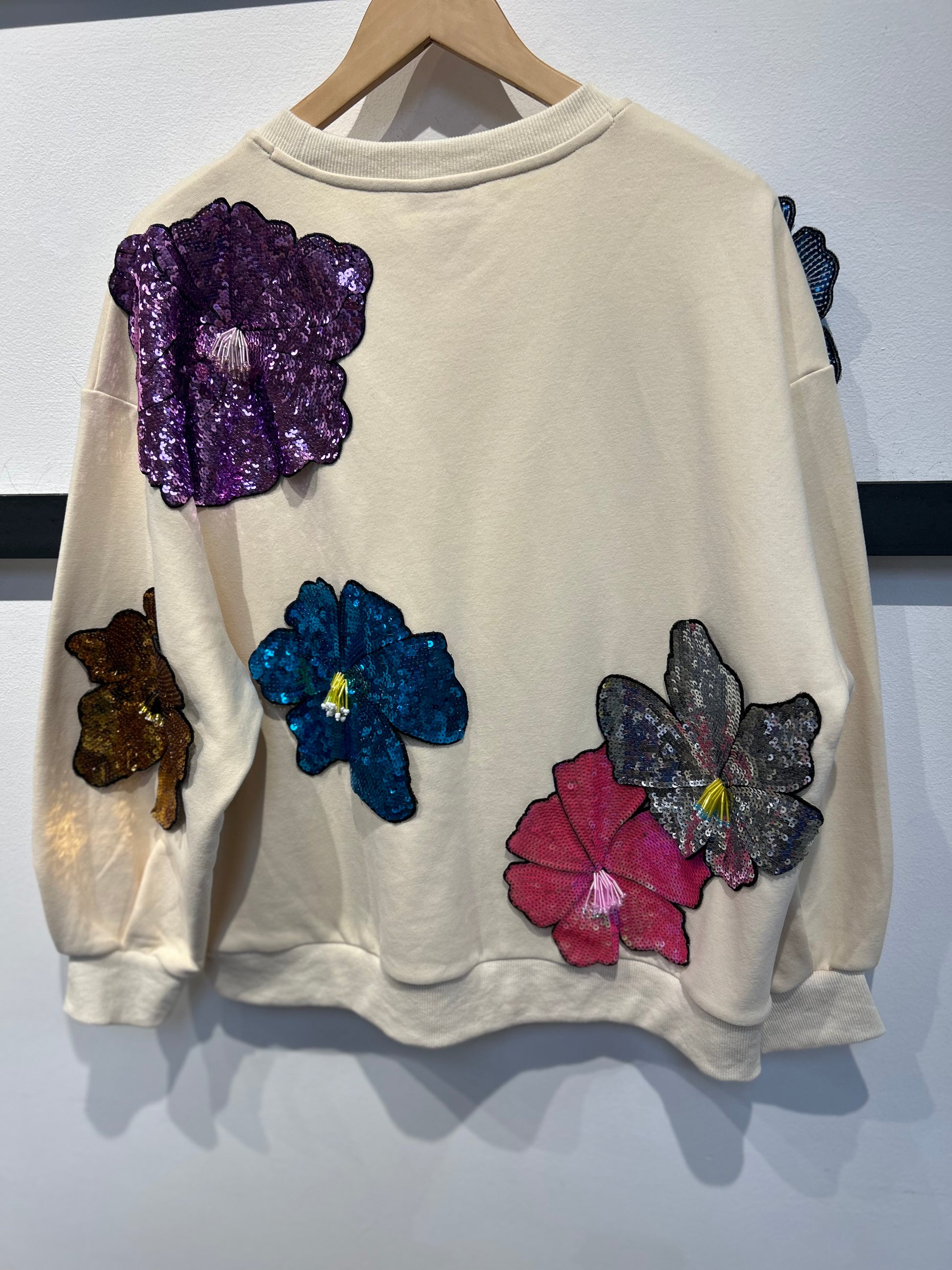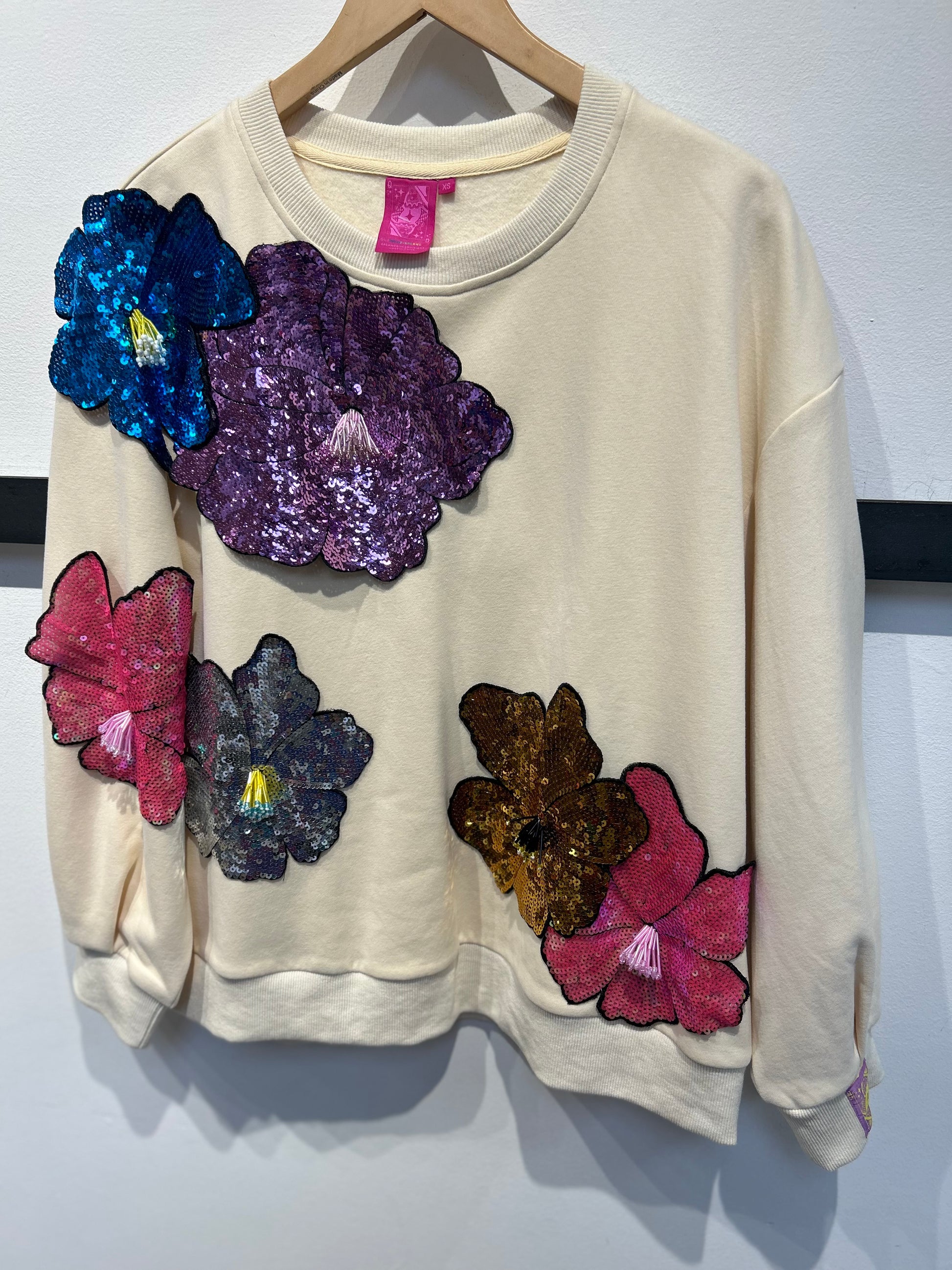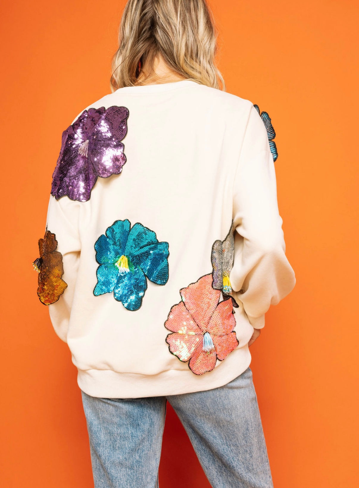 Queen of Sparkles Beige Oversized Flower Sweatshirt