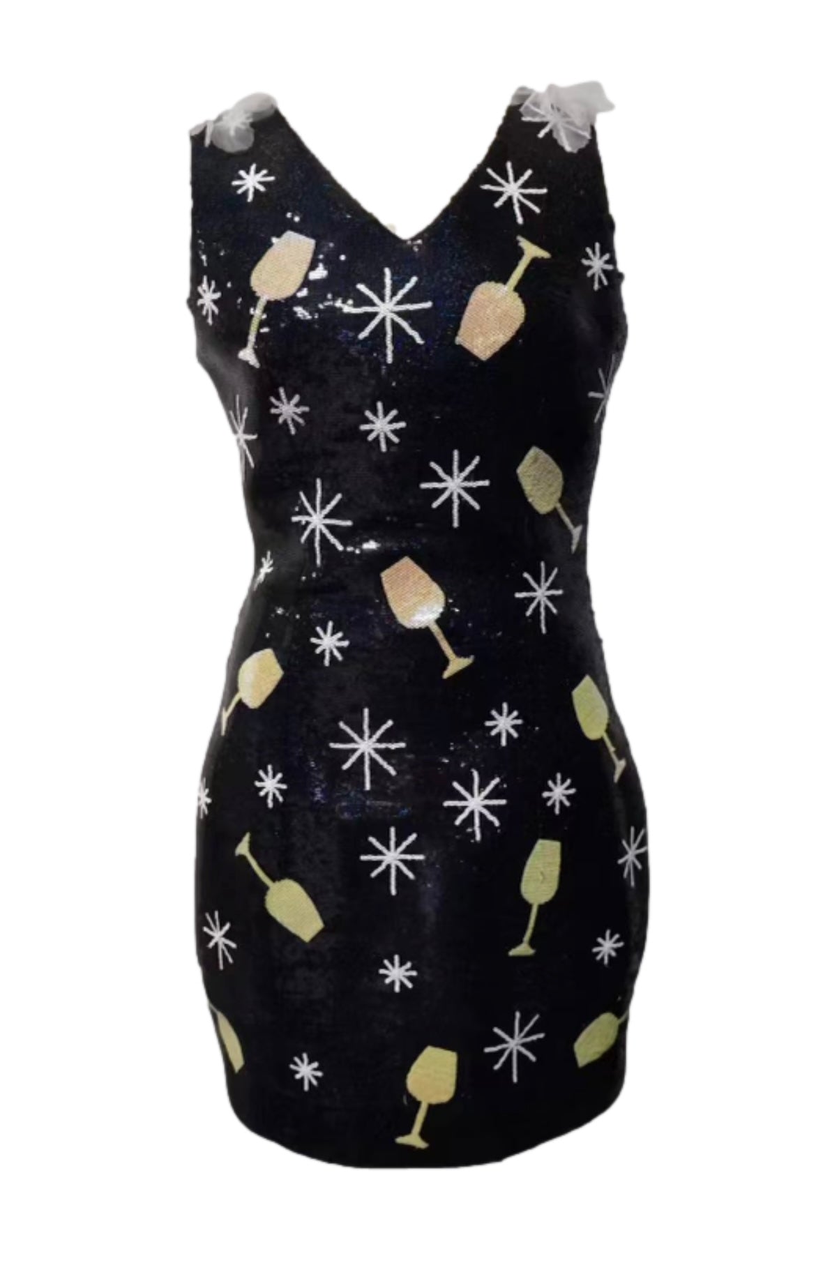 Queen of Sparkles Black Full Sequin Wine Glass Tank Dress
