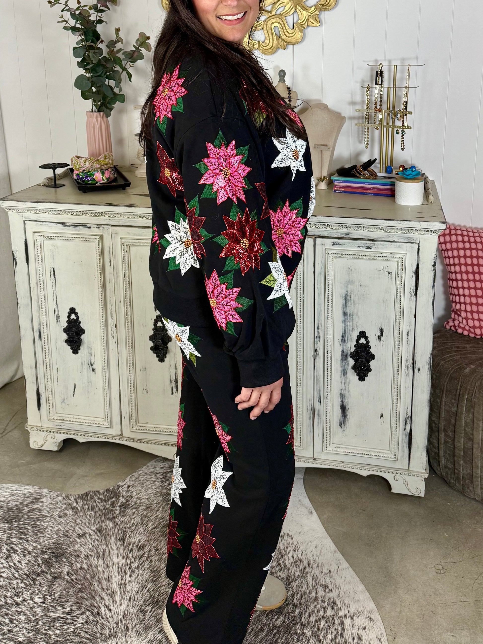 Queen of Sparkles Black Poinsettia Sweatshirt