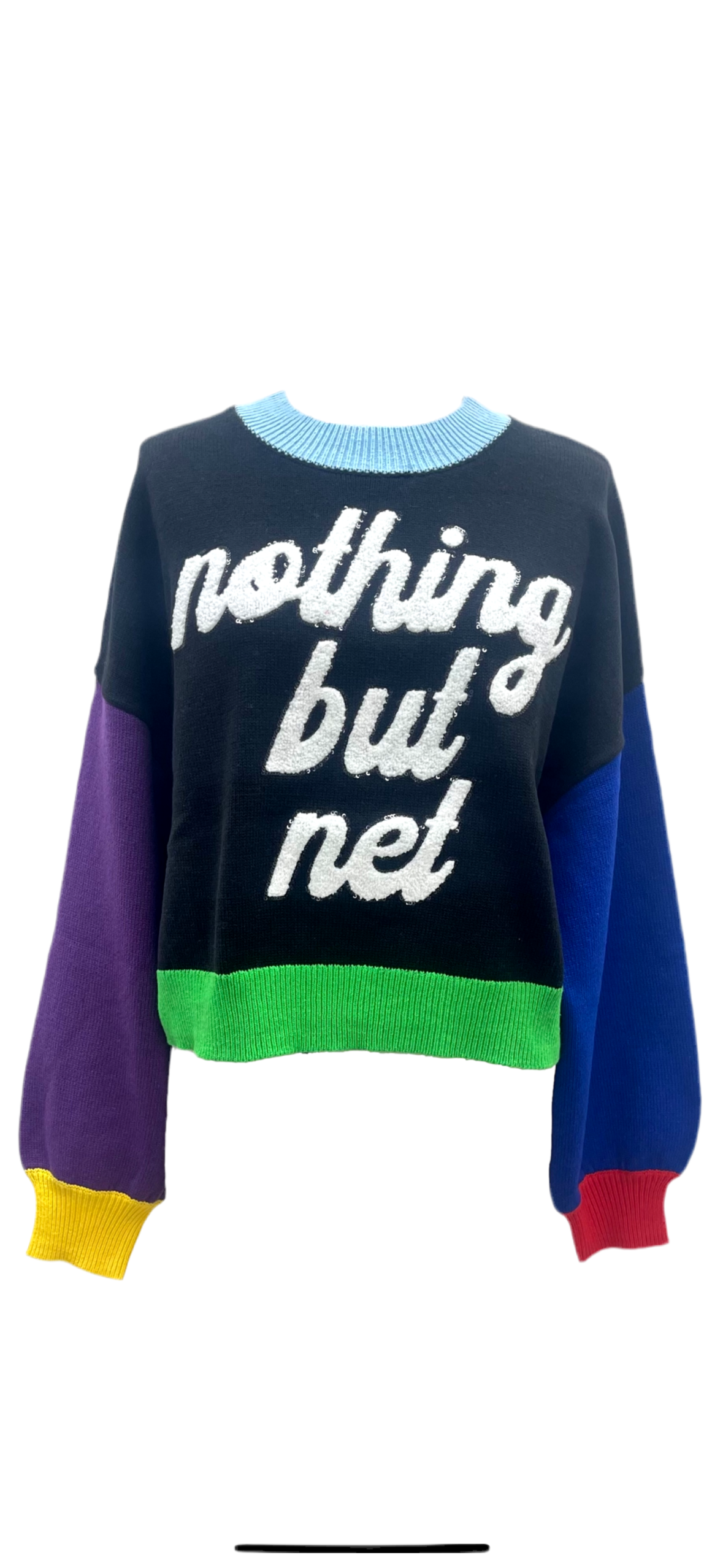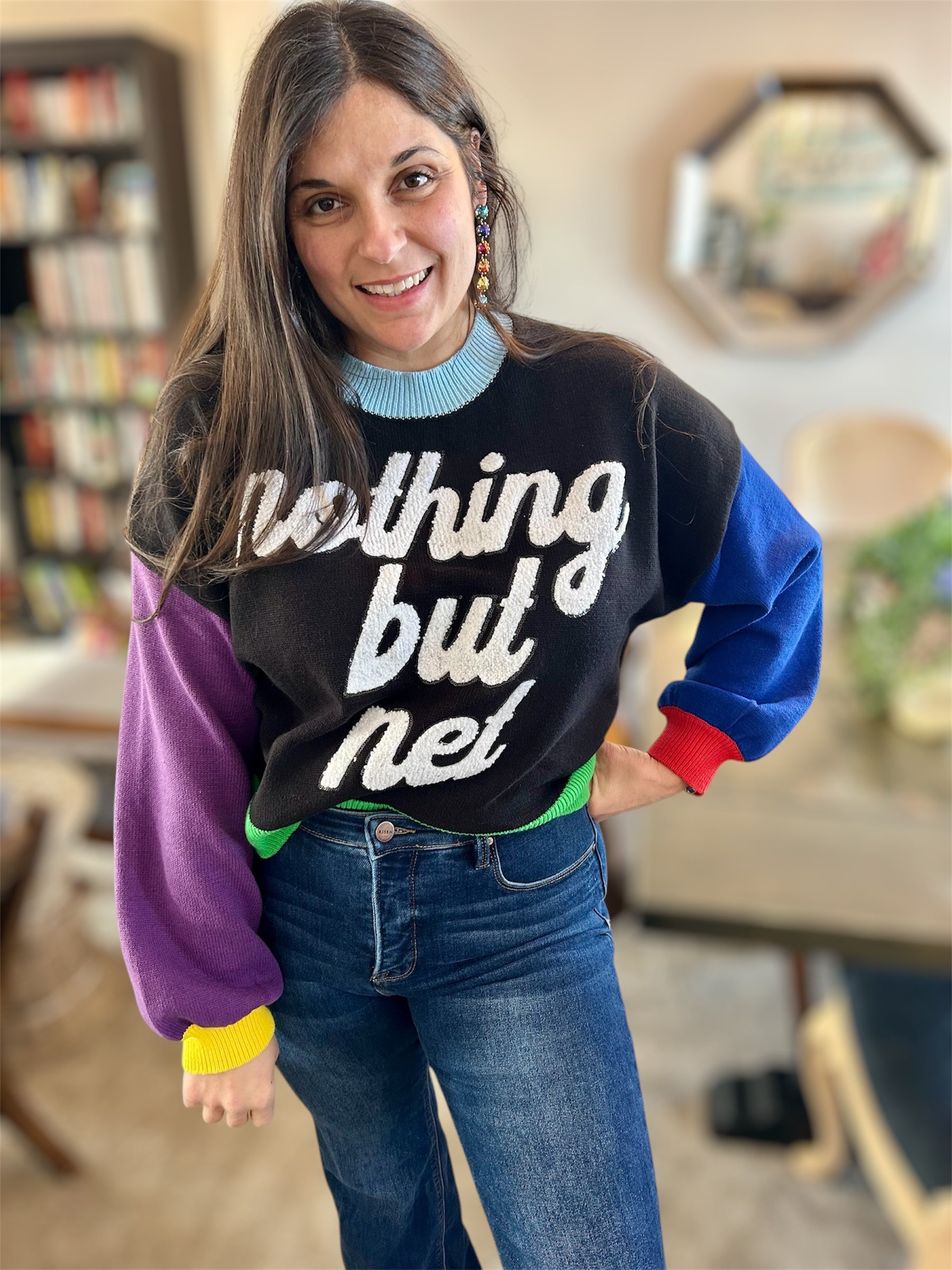 Queen of Sparkles Colorblock Nothing But Net Basketball Sweater
