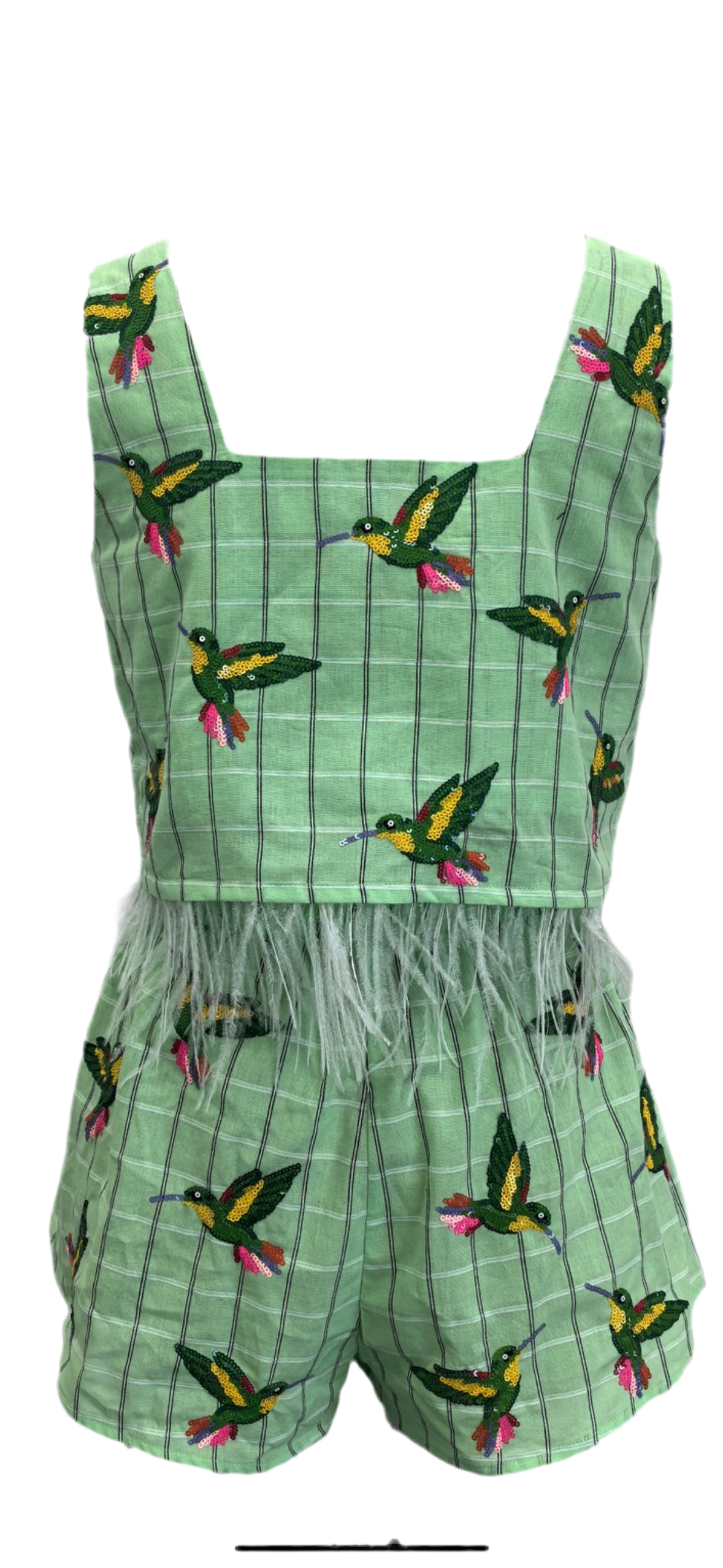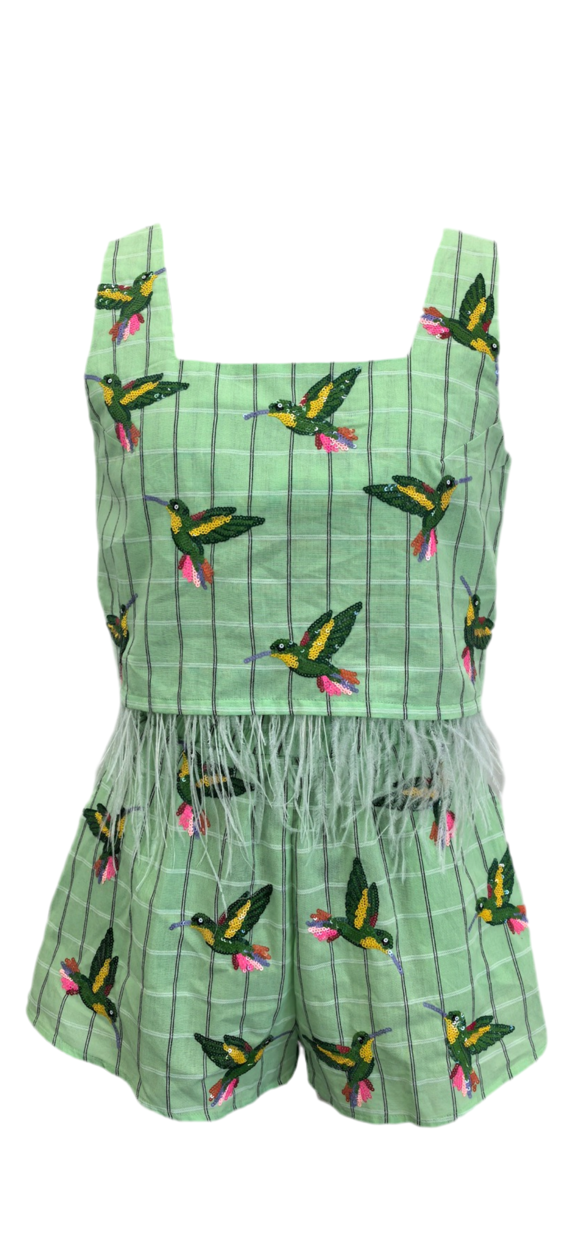 Queen of Sparkles Green Plaid Hummingbird Bird Feather Tank