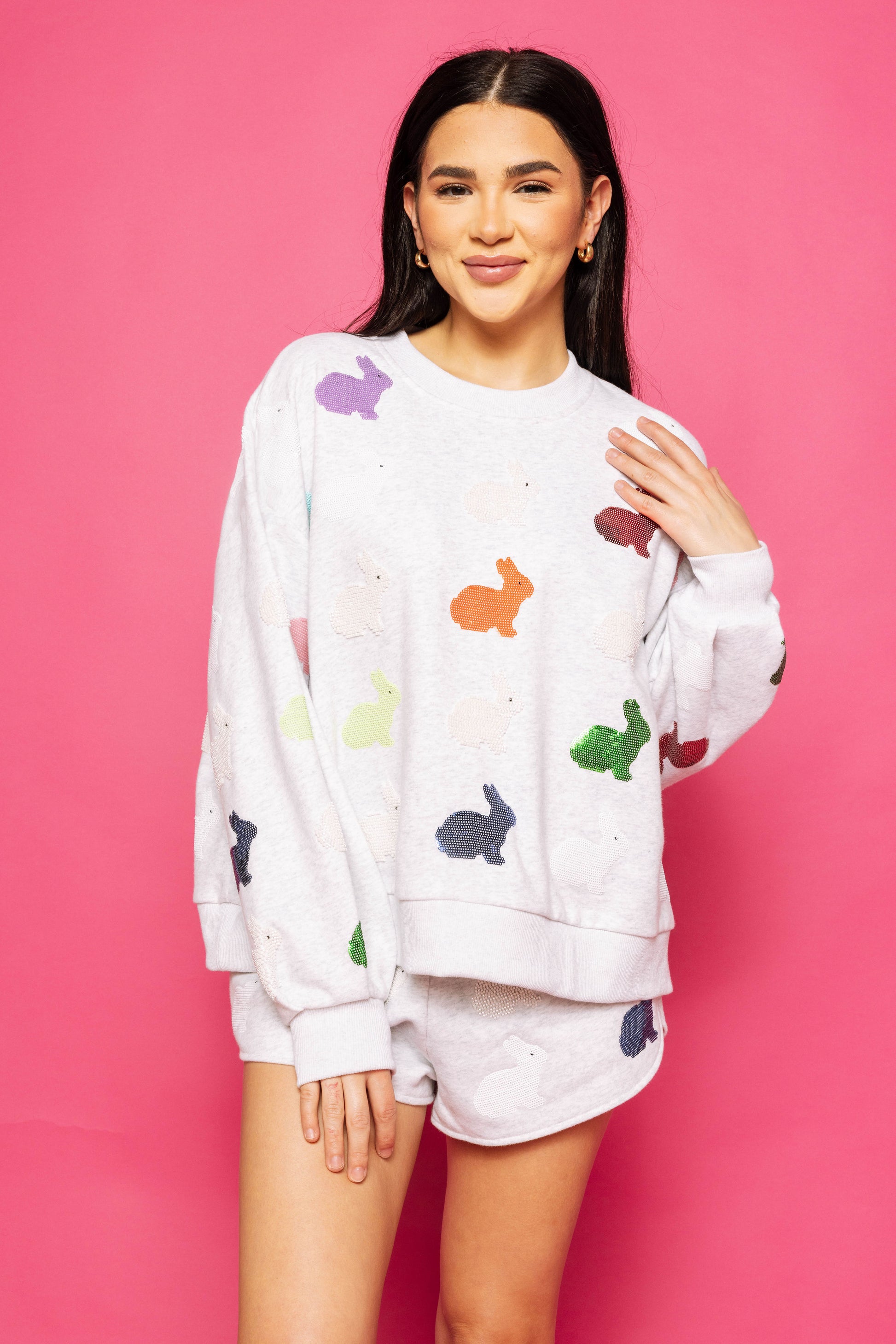 Queen of Sparkles Grey Multi Bunny Sweatshirt