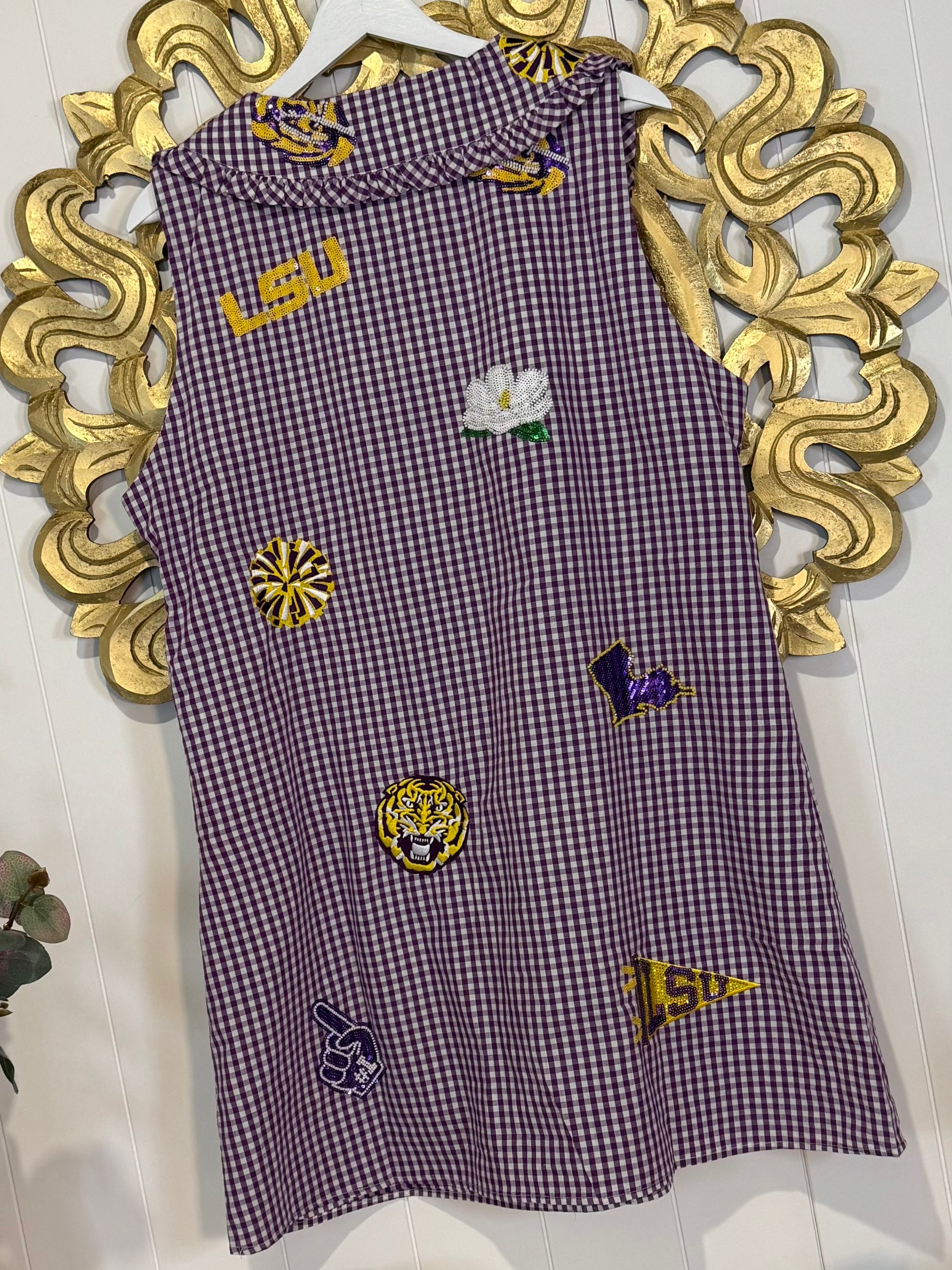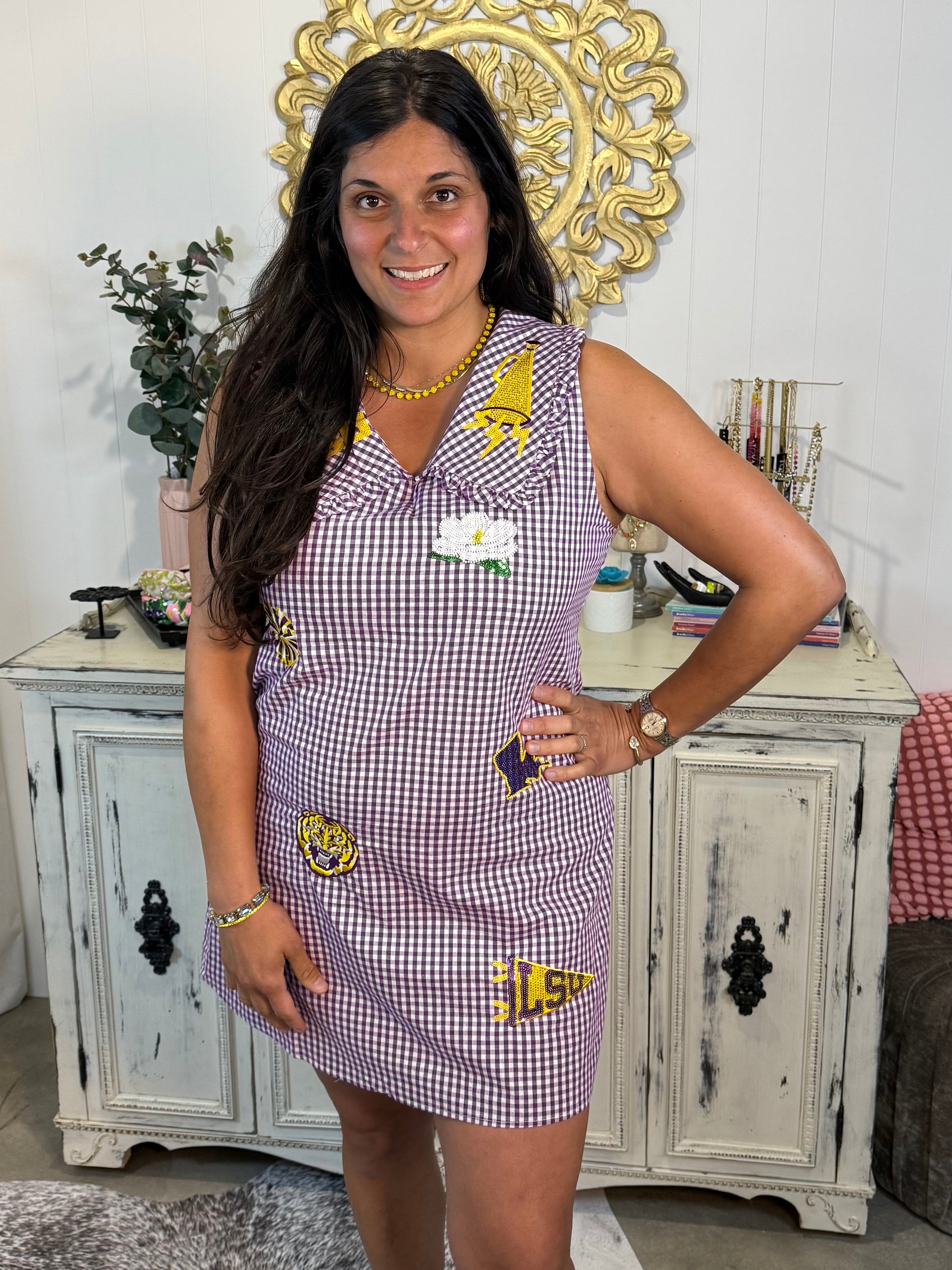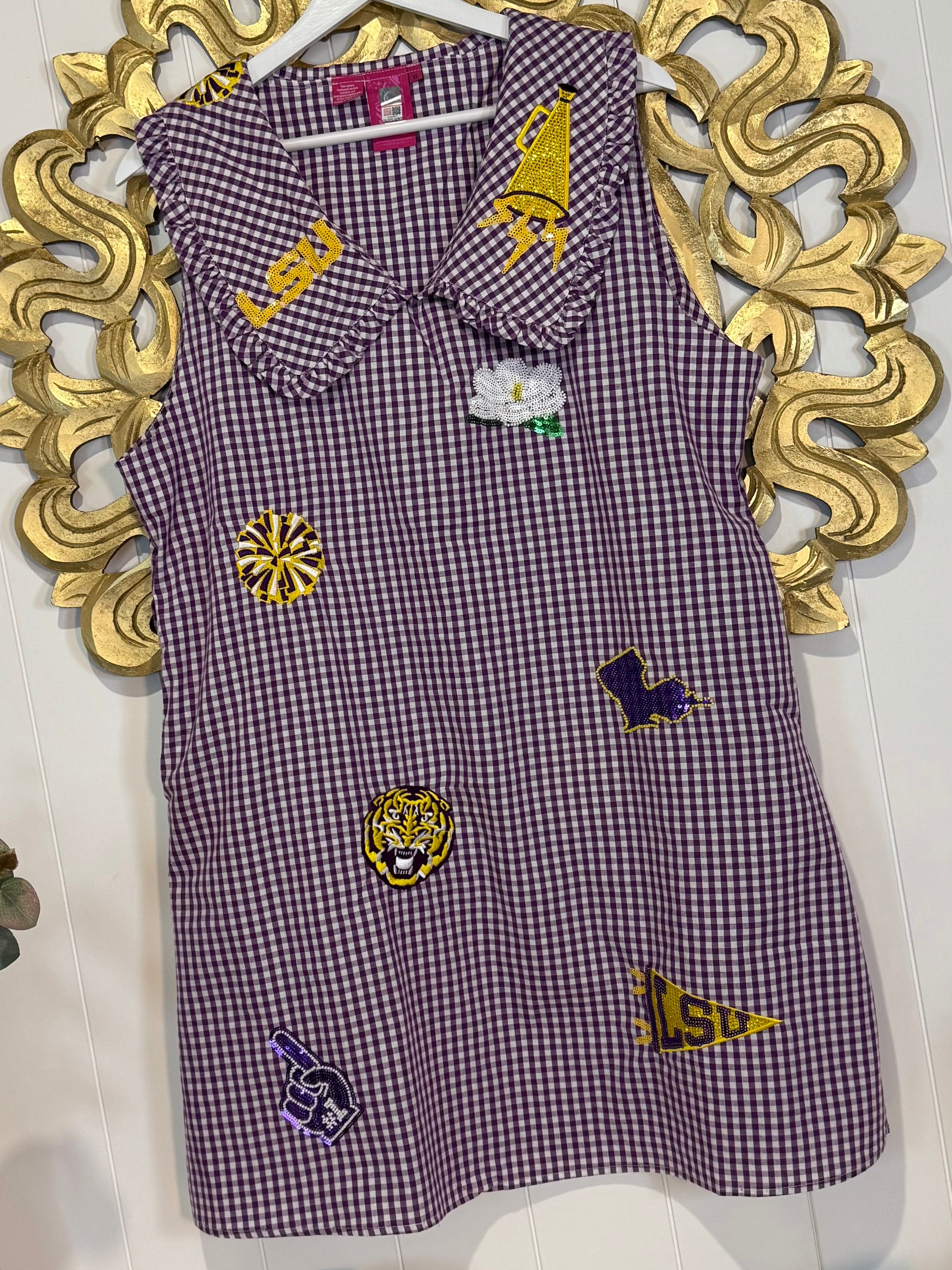 Licensed Queen of Sparkles LSU Mini Icon Gingham Dress