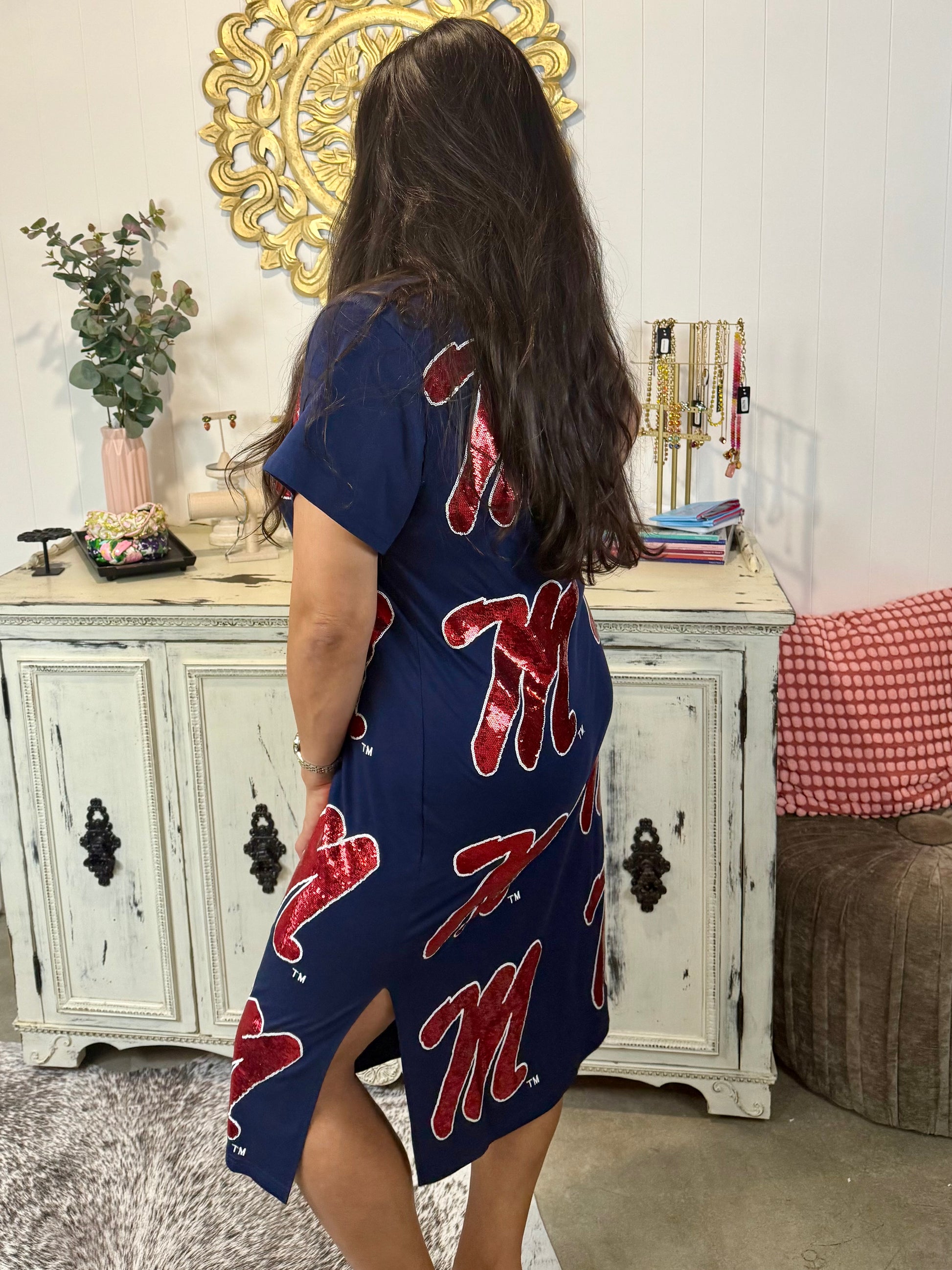 Queen of Sparkles Ole Miss Mascot Midi Tee Dress
