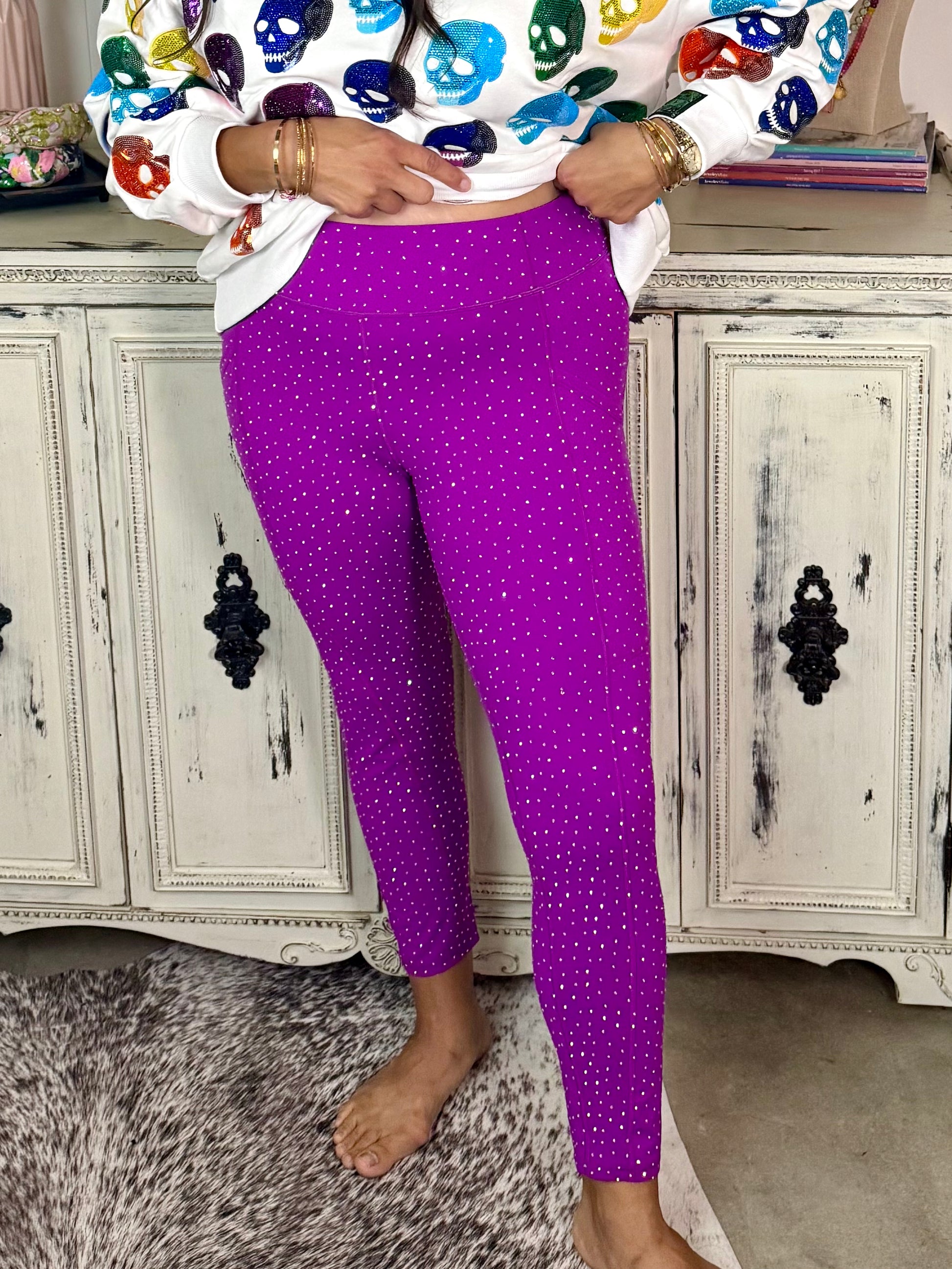 Make your move in color. These bright purple leggings are vibrant, flattering, and so easy to style—perfect for adding a pop to your everyday sparkle rotation.