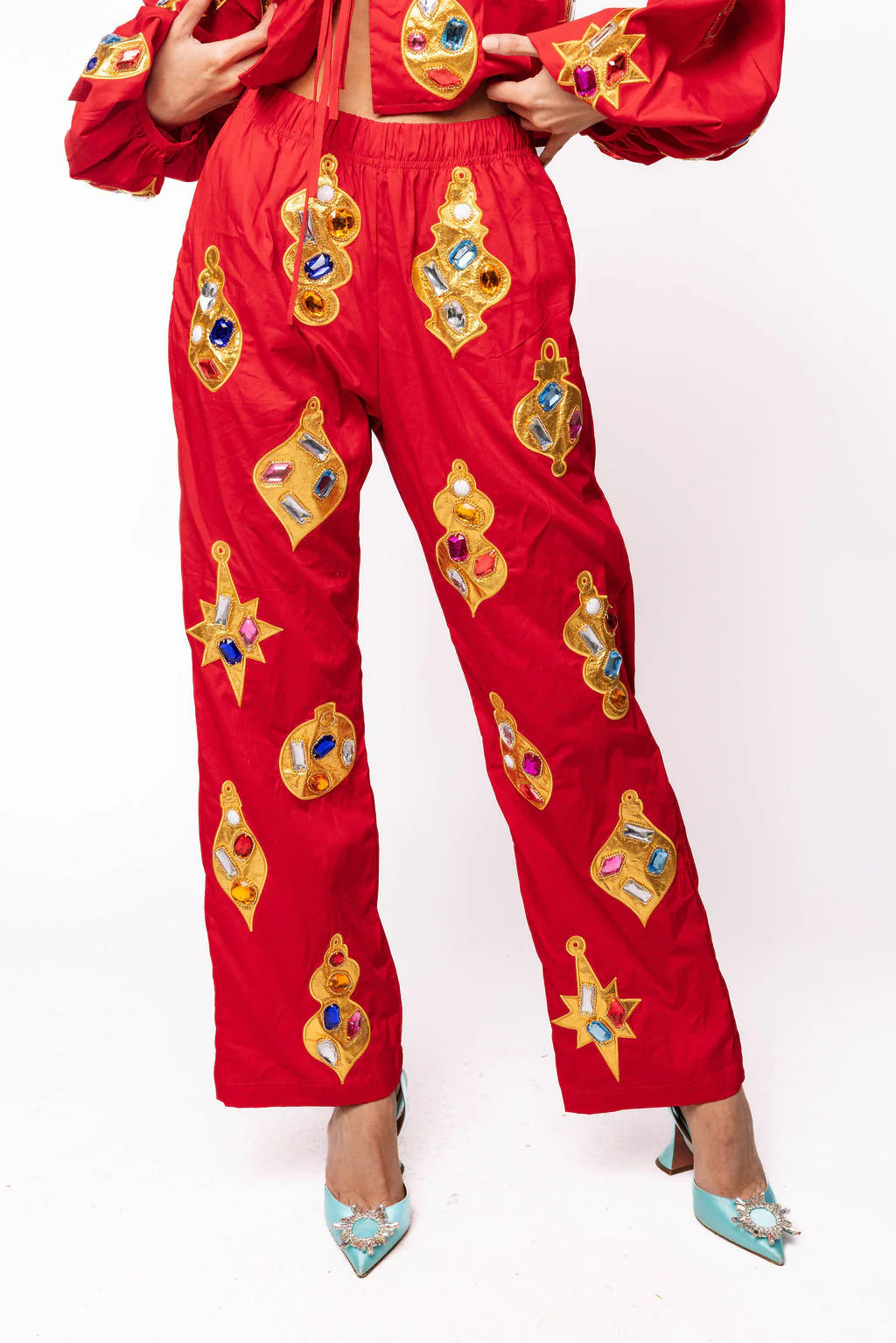 Queen of Sparkles Red & Gold Jeweled Ornament Pant