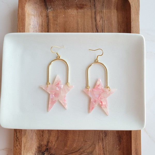 The Rosie Star Earrings are the perfect blend of femininity and edge. With their gold accents and whimsical star design, these earrings will add a touch of playfulness to any outfit. These earrings are perfect for any fashion-forward woman who wants to make a statement with her jewelry. They lovingly pay homage to Rosie the Riveter.