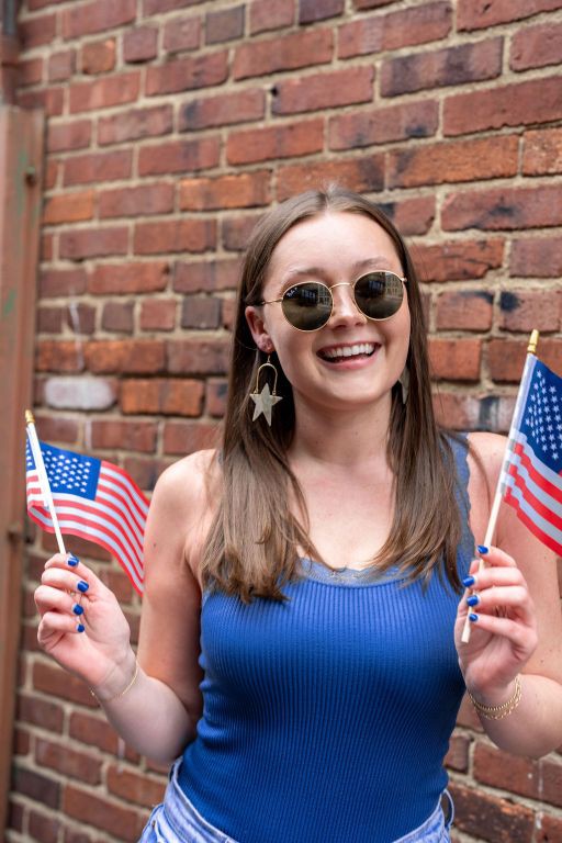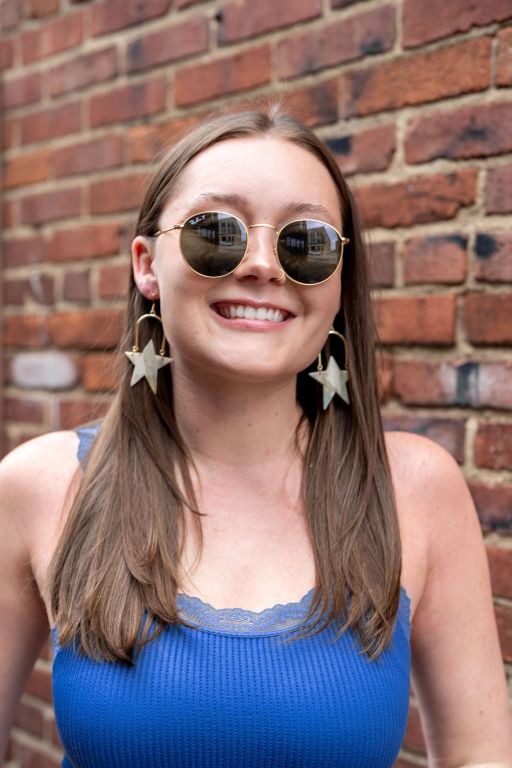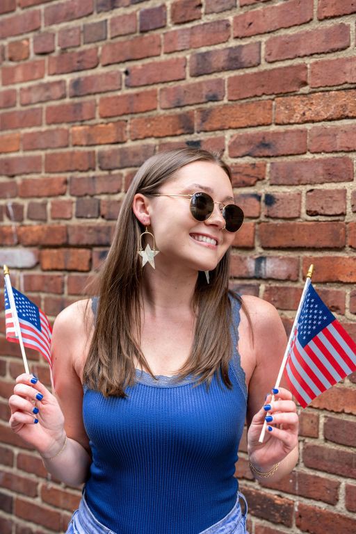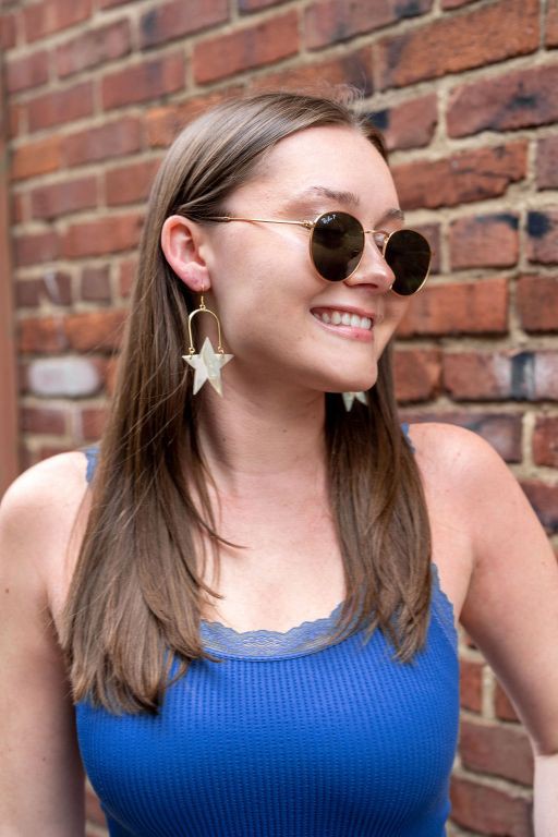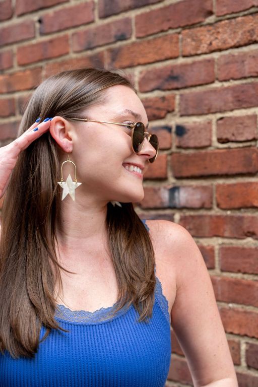 Rosie is our star statement earring. Lovingly paying homage to Rosie the Riveter. You can rock these at all your patriotic events, but the neutral color allows you to rock them all year long.