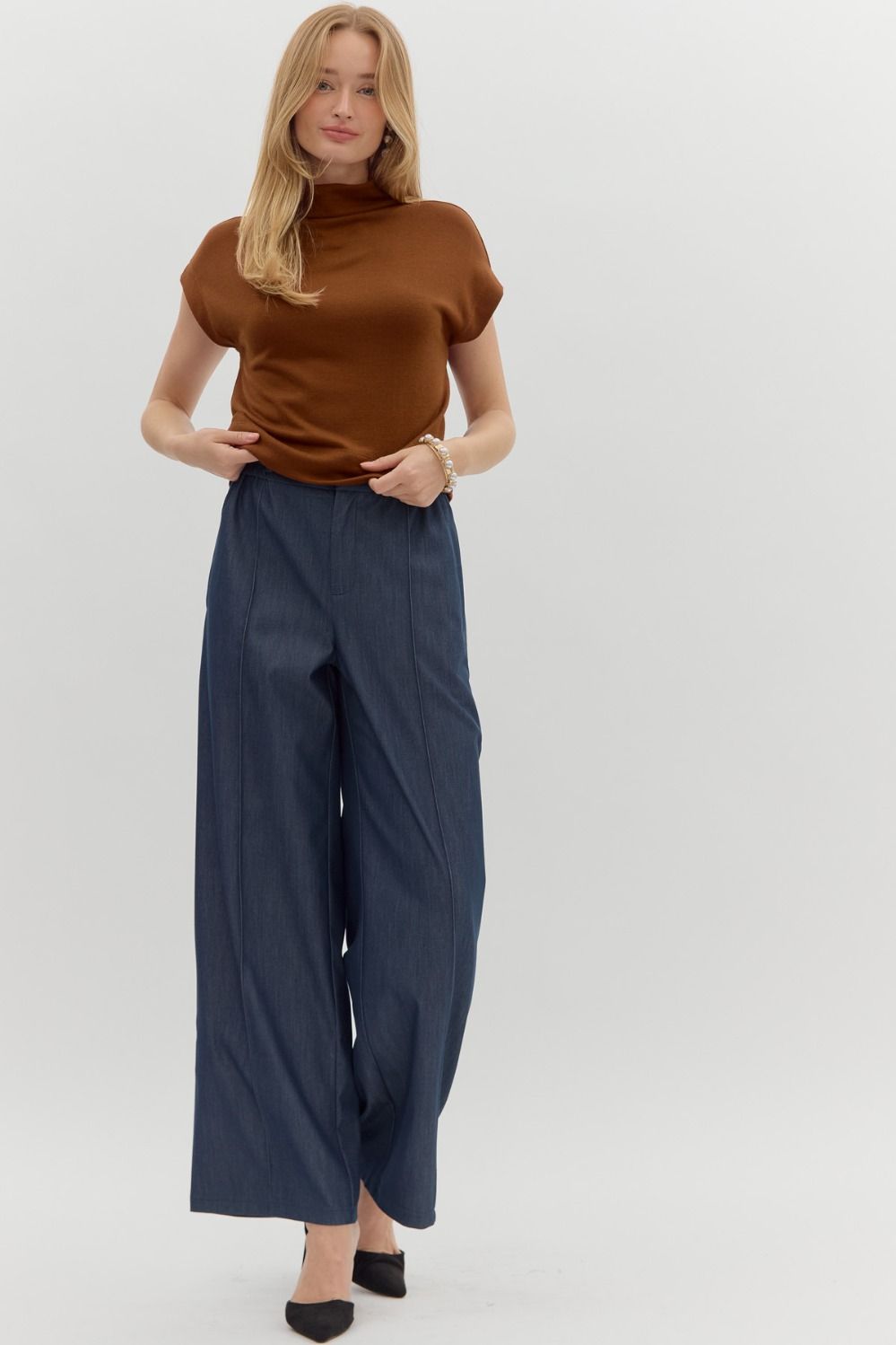 Say hello to your new favorite layering piece. The Cozy Confidence Mock Neck Top in rust brings warm tones and timeless style to your wardrobe. Crafted from a soft, stretchy jersey knit, it features a structured mock neckline, cap sleeves, and a hem that sits perfectly with high-waisted pants or skirts. Whether you're heading to work or a weekend coffee date, this top delivers comfort with elevated polish.