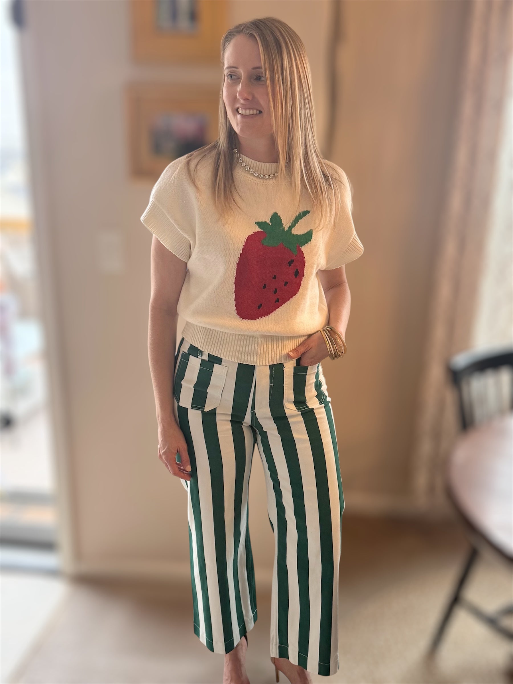 Sweet, playful, and just the right amount of fun đ This strawberry knit sweater top is giving effortlessly cute with a touch of whimsy. Featuring a bold strawberry graphic on a soft cream knit, this top is lightweight, comfy, and perfect for transitioning into warmer days.