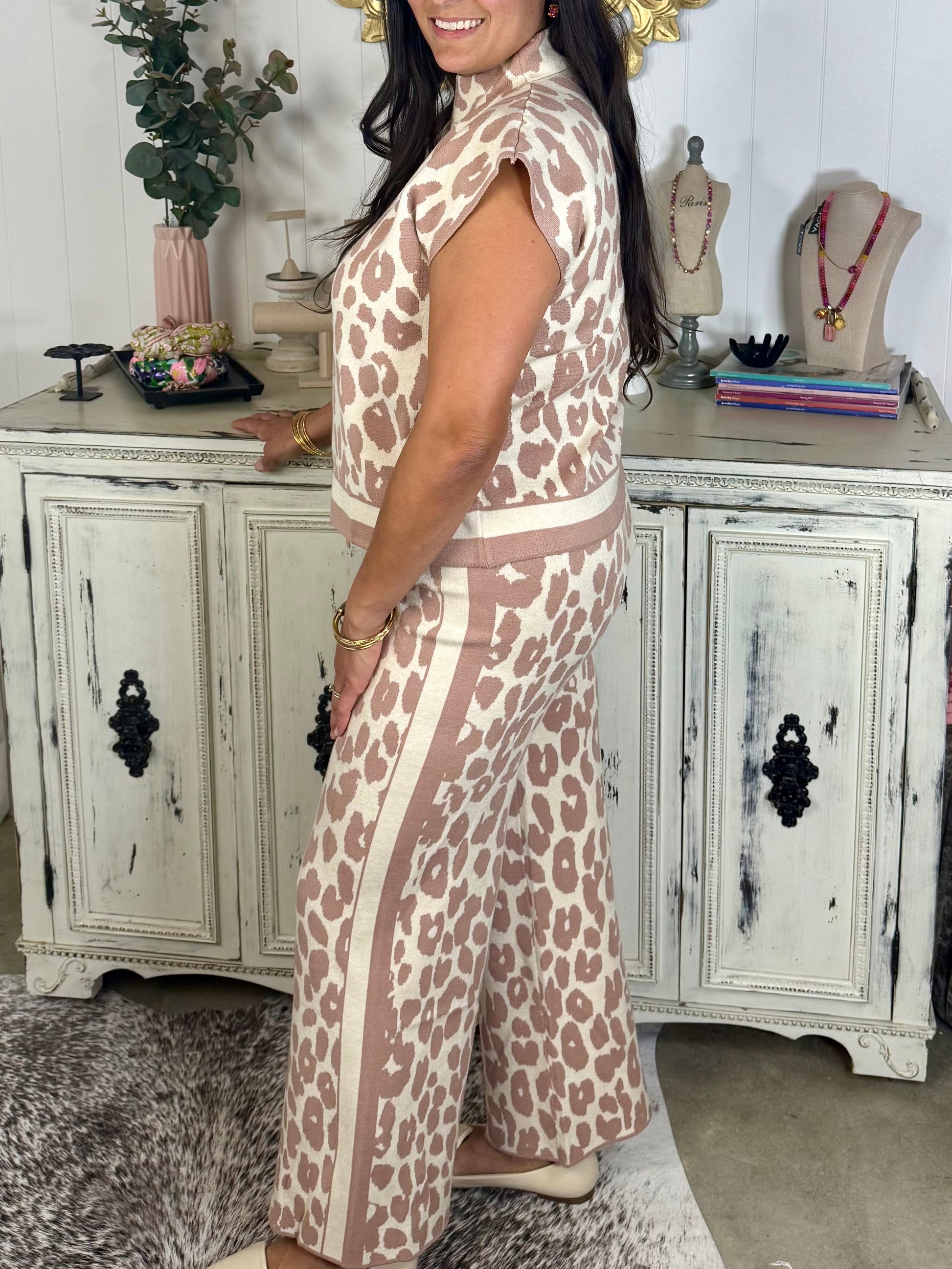 Taupe Leopard Knit Pants