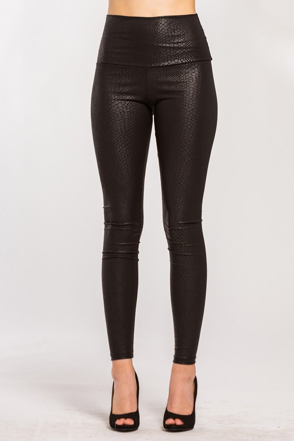 Fitted High Waist Embossed Snake Skin Print Leggings