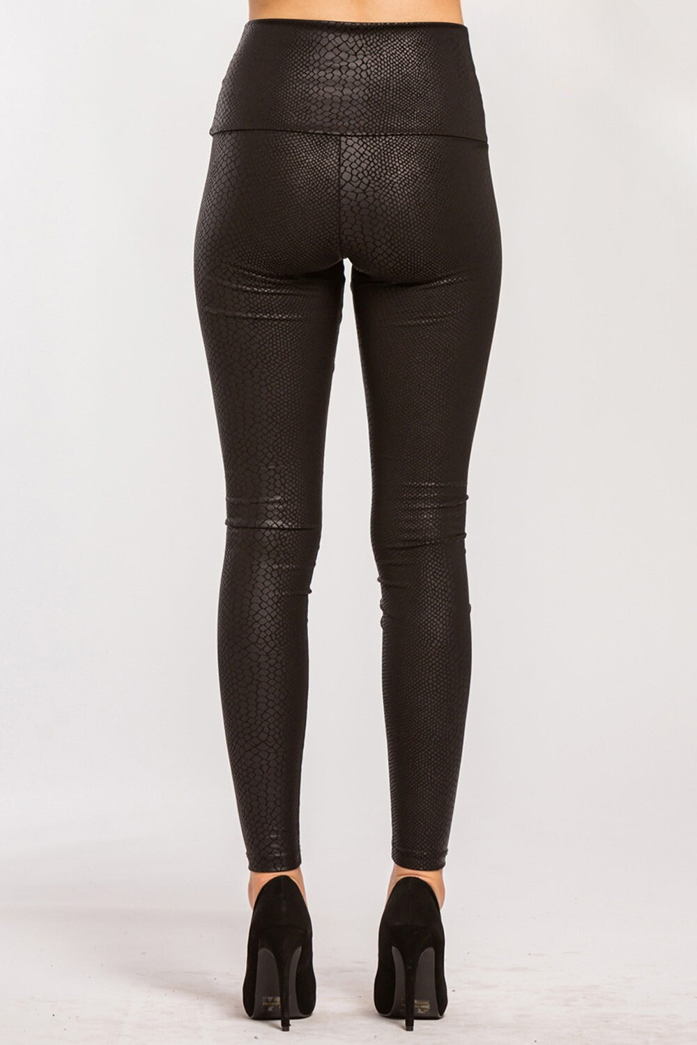 Black Faux Leather Snake Skin Leggings