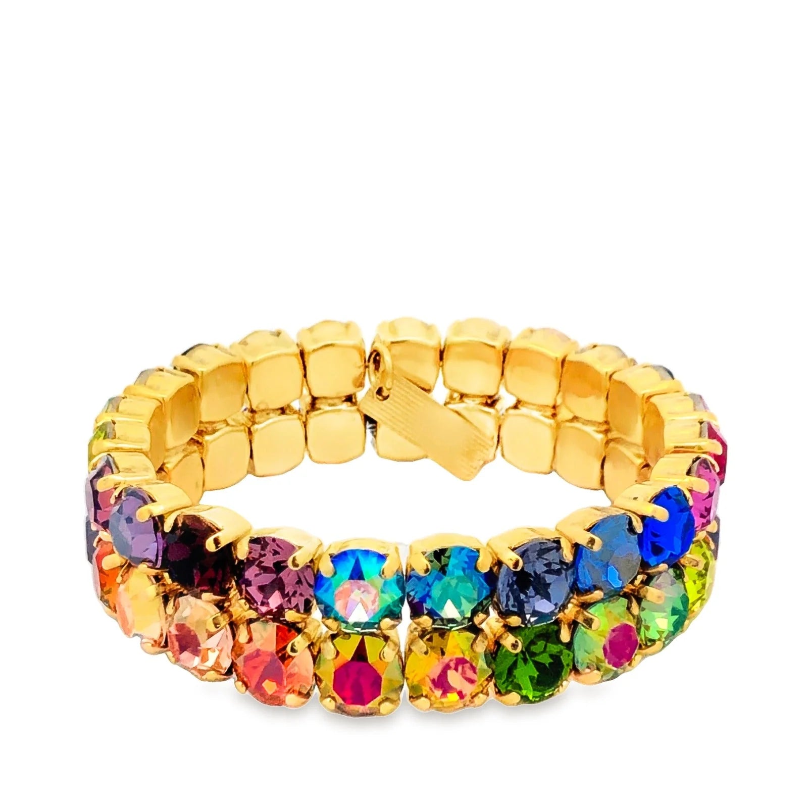 Introducing our Olivia 2 Strand Stretch Bracelet in Addy. It is a one-of-a-kind piece that elevates any kind of outfit. With a striking design in antique gold-plating and high-quality crystals, it is ideal for making a lasting impression. It features a stretch elastic fitting most wrists. Handcrafted in Canada.